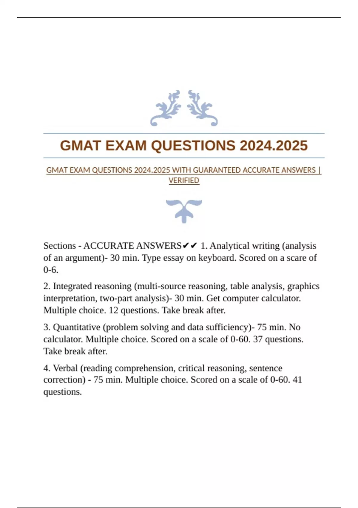 GMAT FOCUS PRACTICE EXAM SET WITH GUARANTEED ACCURATE ANSWERS GMAT PRACTICE QUESTIONS 2024.2025 WITH GUARANTEED ACCURATE ANSWERS |SOLVED!! GMAT PRACTICE QUESTIONS WITH GUARANTEED ACCURATE ANSWERS |VERIFIED GMAT EXAM QUESTIONS 2024.2025 WITH GUARANTEED ACCURATE ANSWERS |VERIFIED