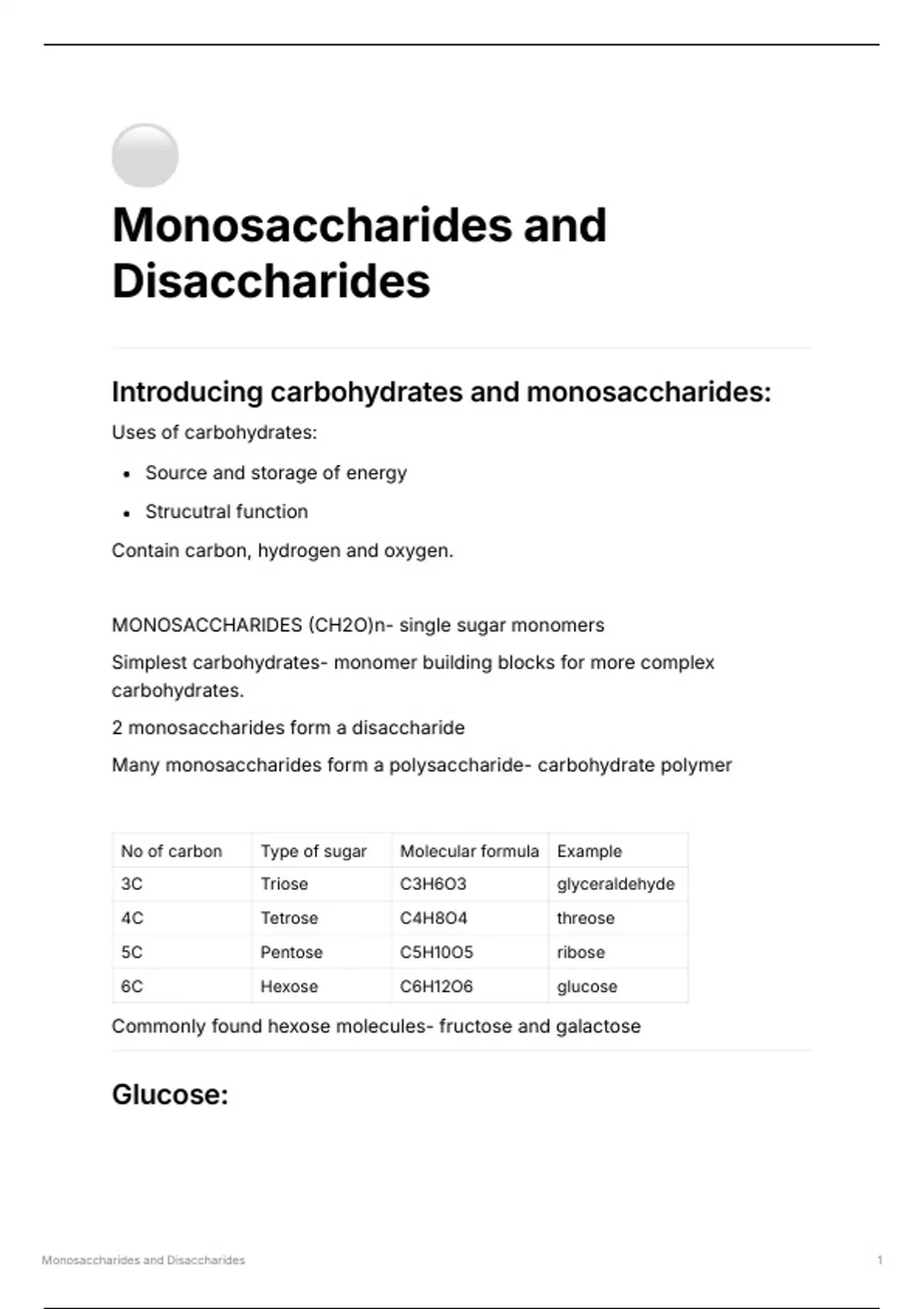 Monosaccharides and Disaccharides joined with Polysaccharides for Unit 1- Biological Molecules for AQA A Level Biology.course.