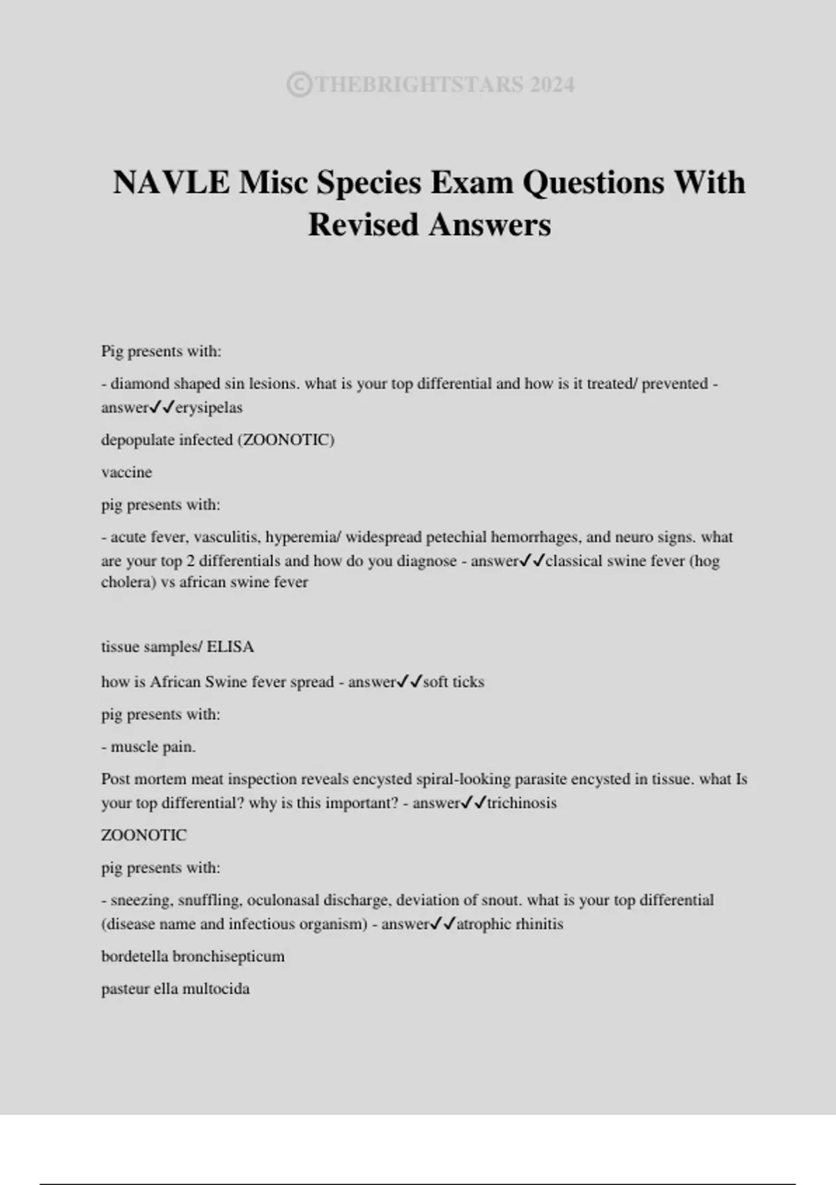 Test 1: NAVLE Questions Canine, Feline, Bovine Exam Questions With Revised Answers