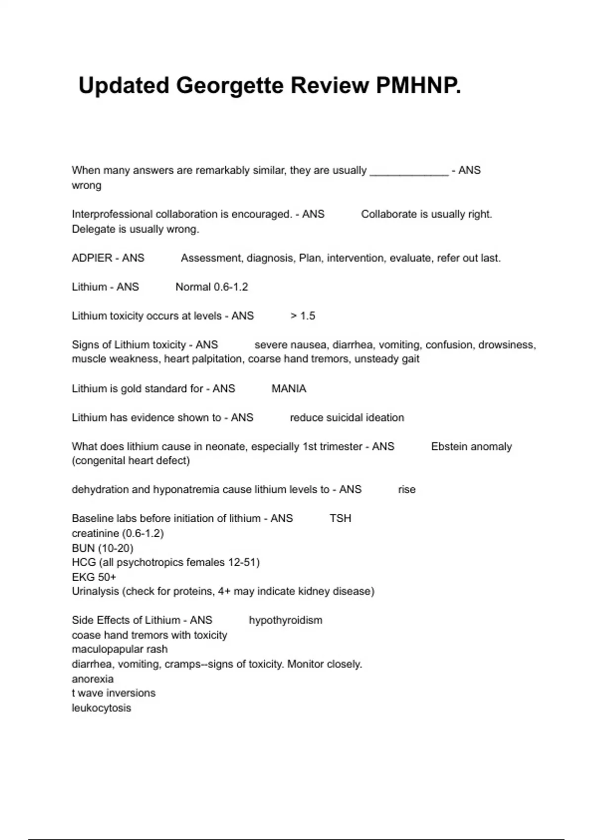 Latest Georgette Review PMHNP Exam Questions And Answers