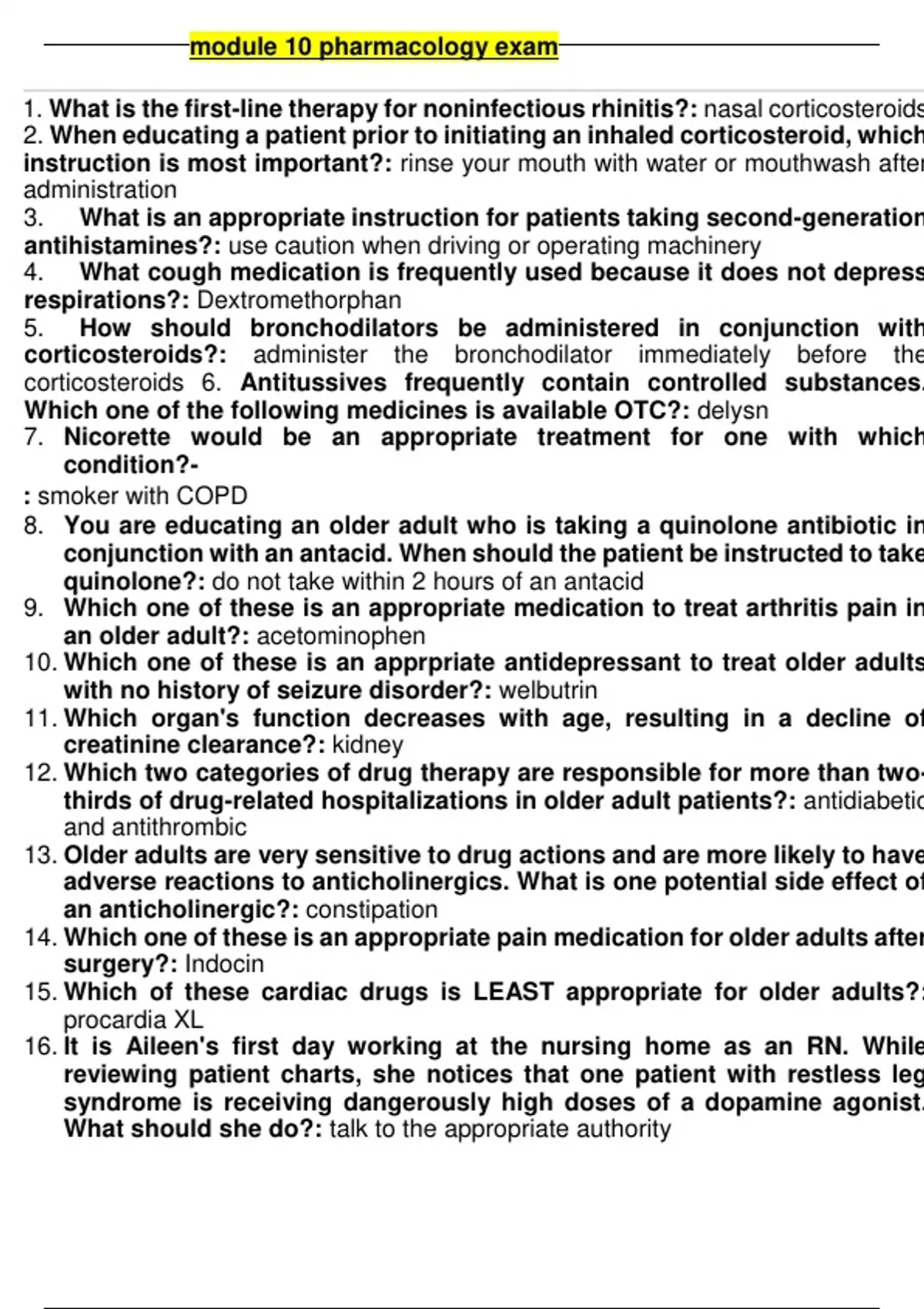 Pharmacology nurs 251 module 10 exam portage learning geneva college abc nursing