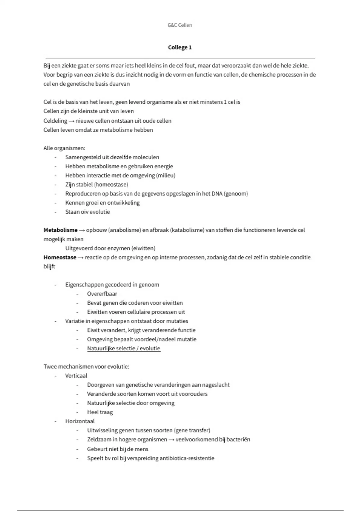 Alle hoorcollege aantekeningen van het vak Genen en Cellen (Gezondheidswetenschappen jaar 1)