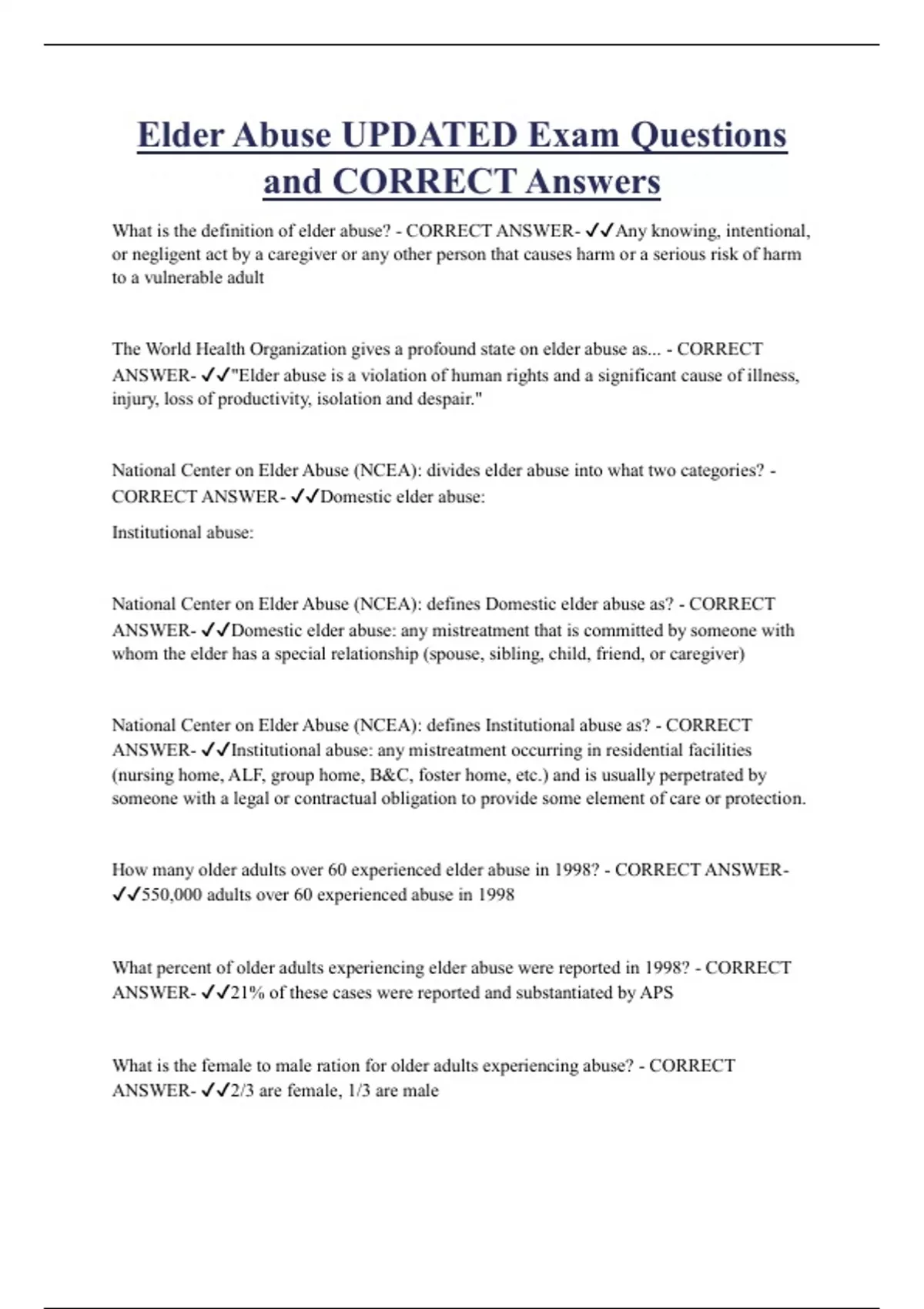 Elder Abuse Bundled Exam Questions and CORRECT Answers