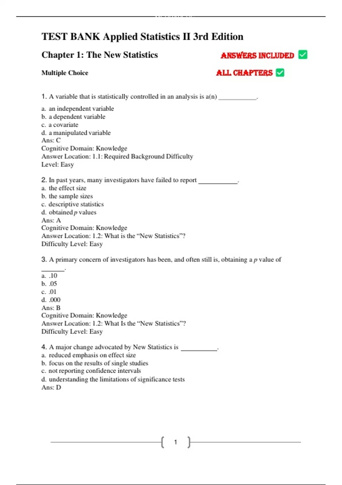 Test Bank for Applied Statistics Vol I & Vol II Multivariable and Multivariate Techniques 3rd Edition by Rebecca M. Warner