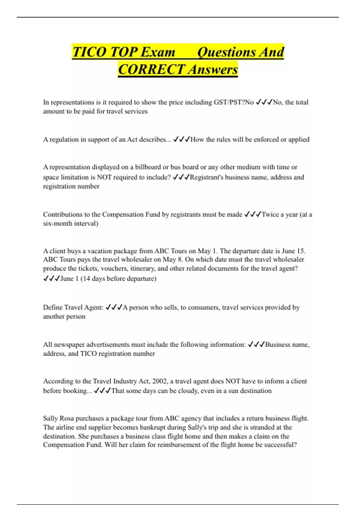 TICO Bundled Exam Questions and CORRECT Answers