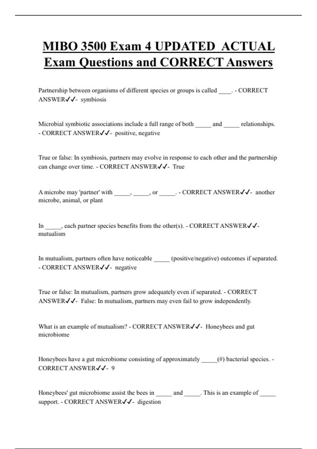 MIBO 3500 Bundled Exam Questions and CORRECT Answers