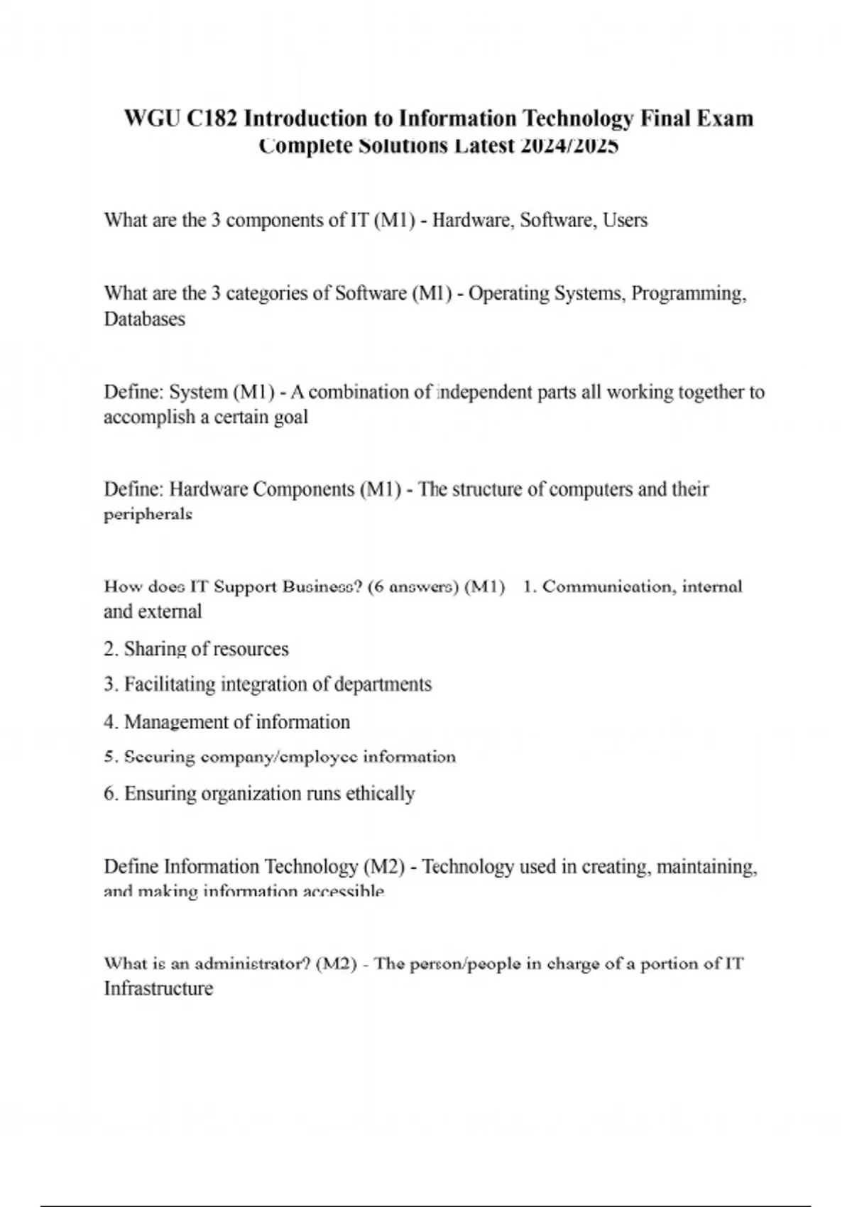 WGU C182 INTRODUCTION TO IT BUNDLE WITH EXAMS ,OAs AND MODULE QUIZZES DETAILED QUESTIONS AND ANSWERS LATEST UPDATE 2024/2025 UPDATE(ALL YOU NEED IS HERE)