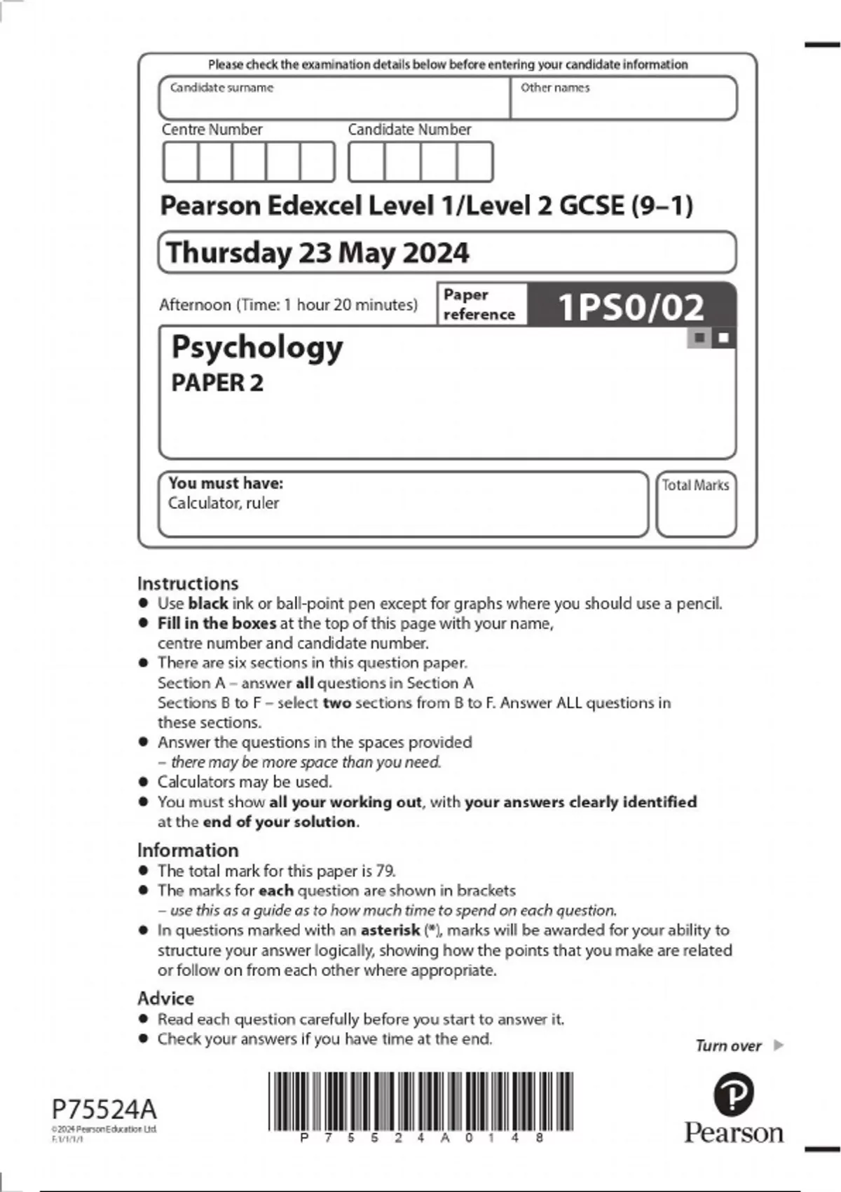 2025 EDEXCEL GCSE PSYCHOLOGY PAPER 2