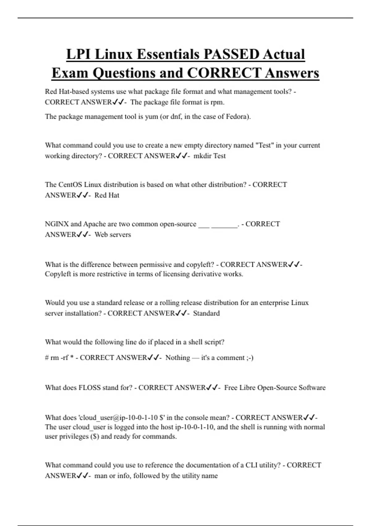 LPI Linux Essentials Bundled Exam Questions and CORRECT Answers