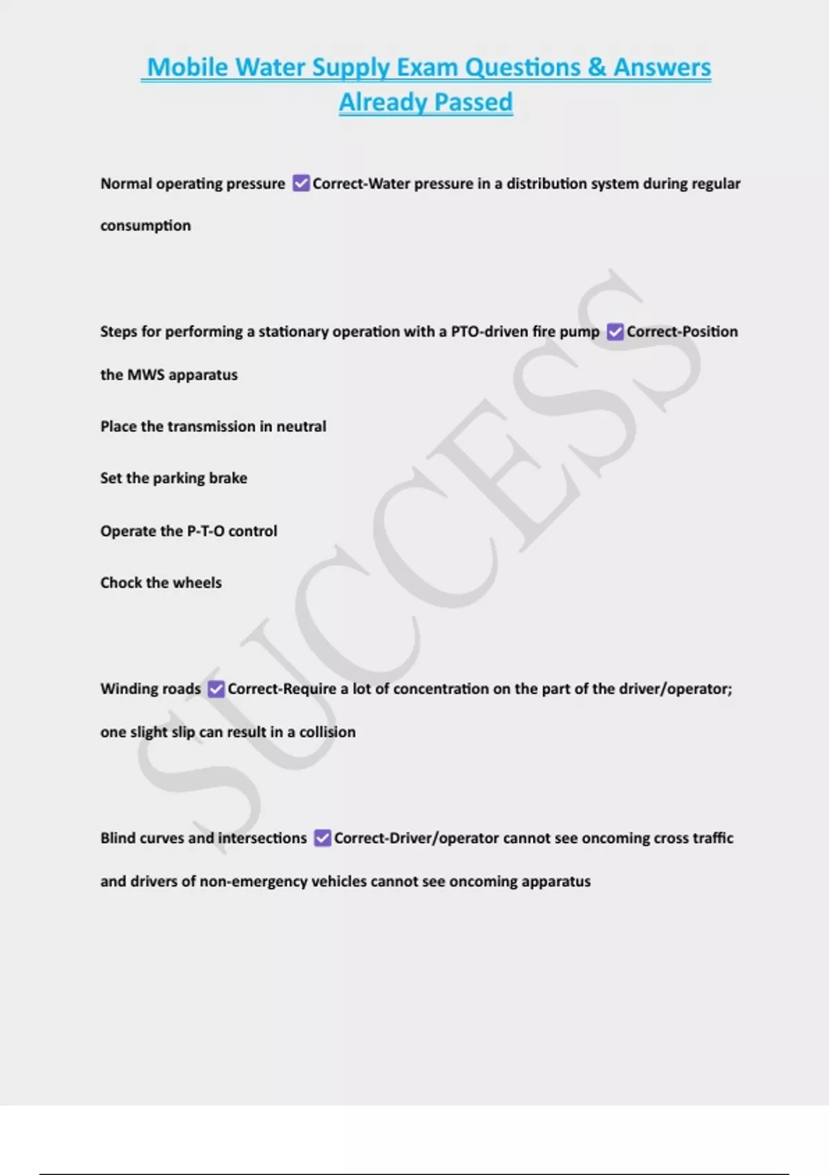 FULL PACKAGE-::MOBILE WATER SUPPLY EXAMS(LATEST UPDATE)