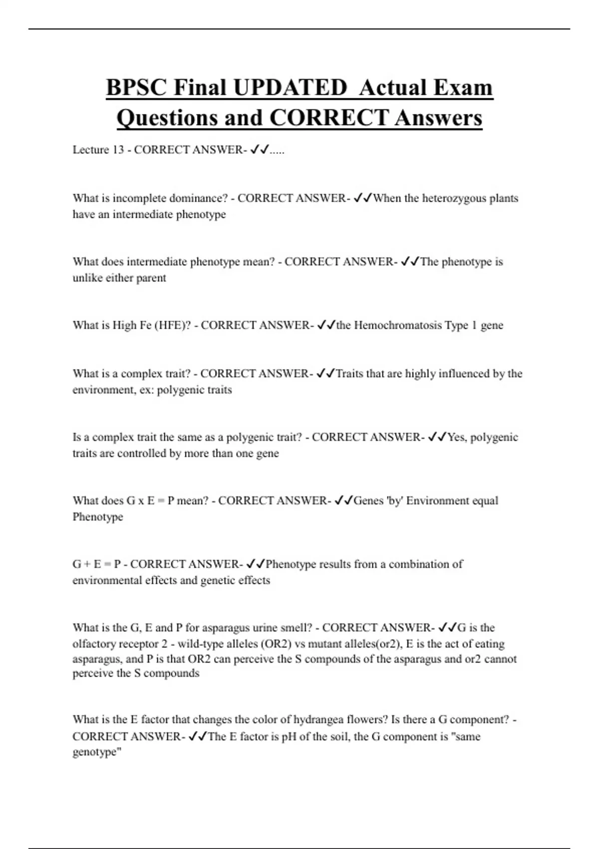 BPSC Bundled Exam Questions and CORRECT Answers