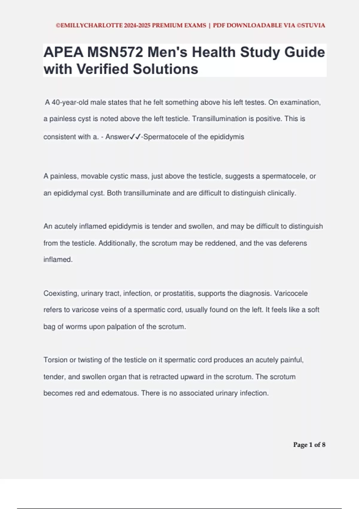 APEA MSN572 Men's Health Study Guide with Verified Solutions