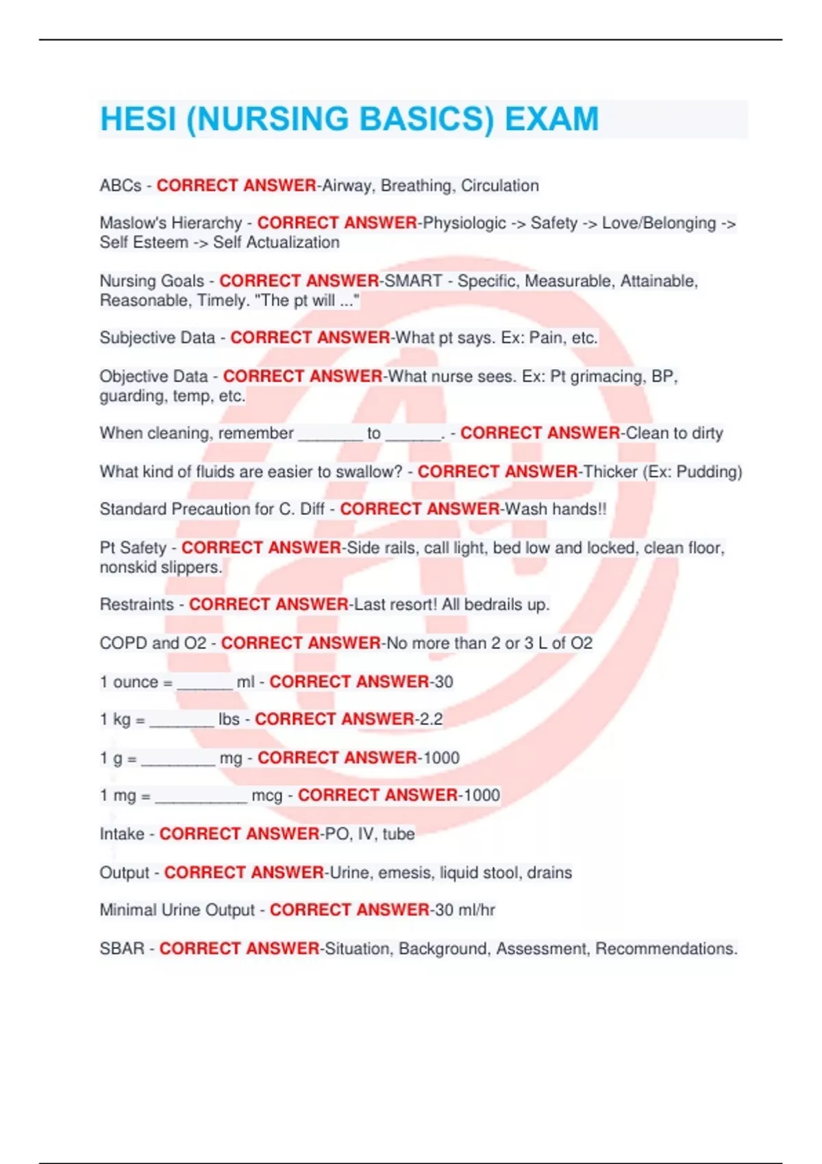 RN HESI WITH VERIFIED ANSWERS 2024