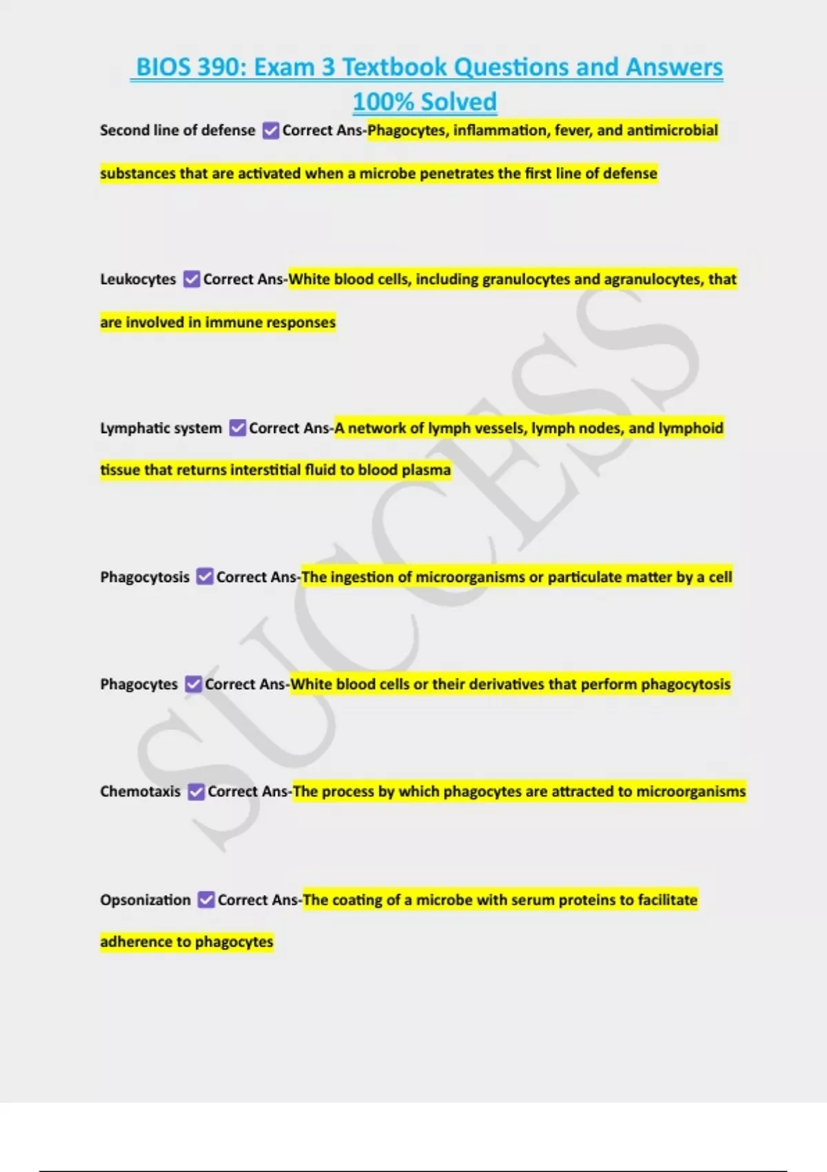 BIOS 390 BUNDLED EXAMS WITH COMPLETE SOLUTIONS(LATEST UPDATE)