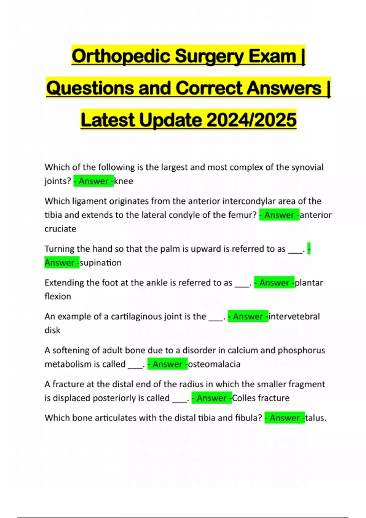 ORTHOPEDICS TECHNOLOGIST BUNDLED EXAMS::::: QUESTIONS AND CORRECT ANSWERS | LATEST UPDATE 2024/2025