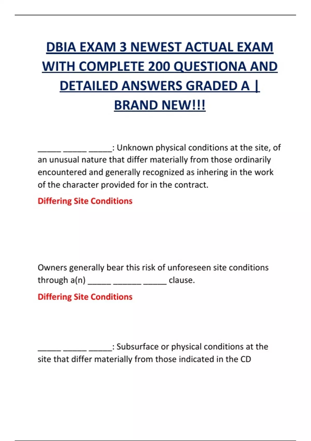1 Exam (elaborations) DBIA EXAM 1 NEWEST ACTUAL EXAM WITH COMPLETE 200 QUESTIONS AND DETAILED ANSWERS GRADED A | BRAND NEW!!! 2 Exam (elaborations) DBIA EXAM 2 NEWEST ACTUAL EXAM (STUDY GUIDE) WITH COMPLETE 200 QUESTIONS AND DETAILED ANSWERS GRADED A | BRAND NEW!!! 3 Exam (elaborations) DBIA EXAM 3 NEWEST ACTUAL EXAM WITH COMPLETE 200 QUESTIONA A