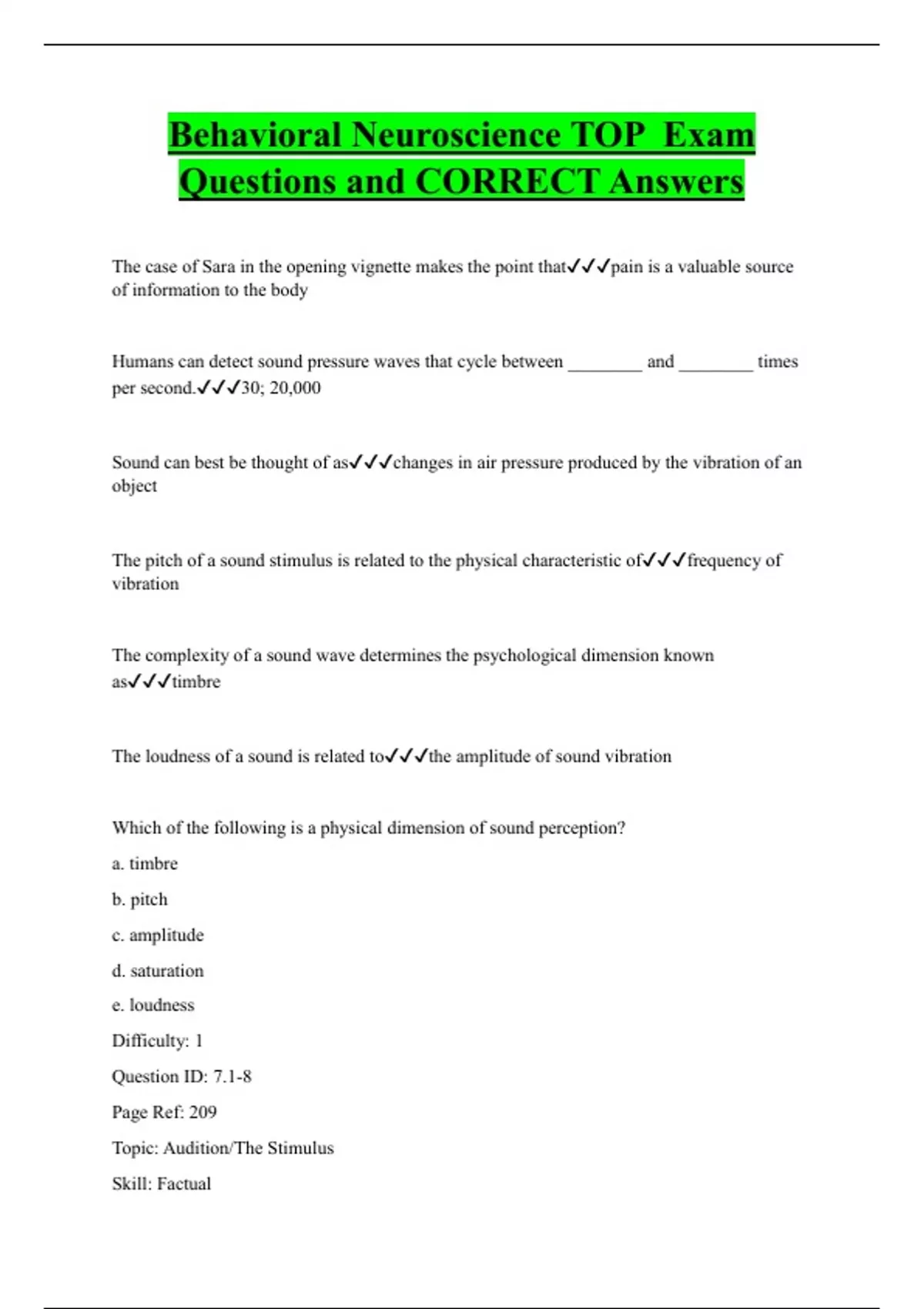 Behavioral Neuroscience Bundled Exam Questions and CORRECT Answers