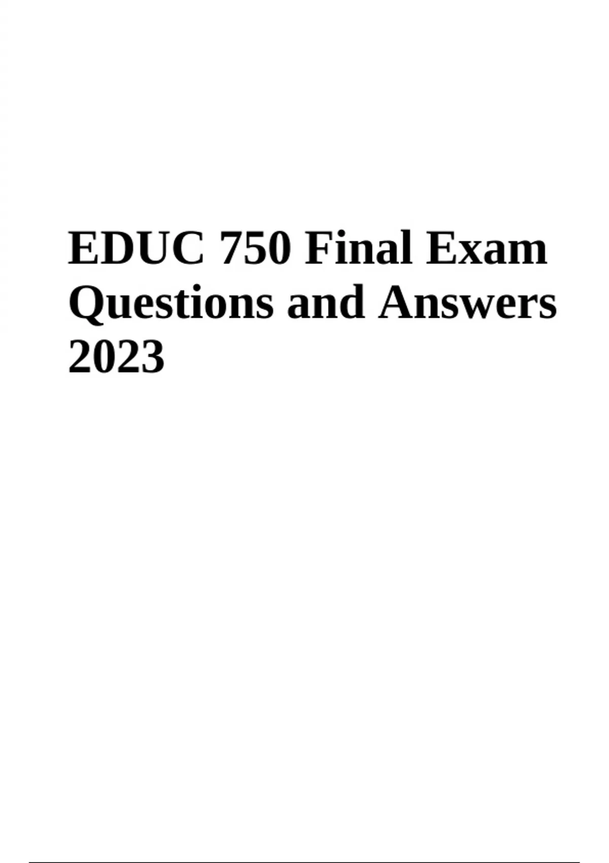 EDUC 750 Quantitative Research Exam Questions and Answers Latest Updated 2024 (GRADED) & EDUC 750 Final Exam Questions and Answers Latest Updated (GRADED)