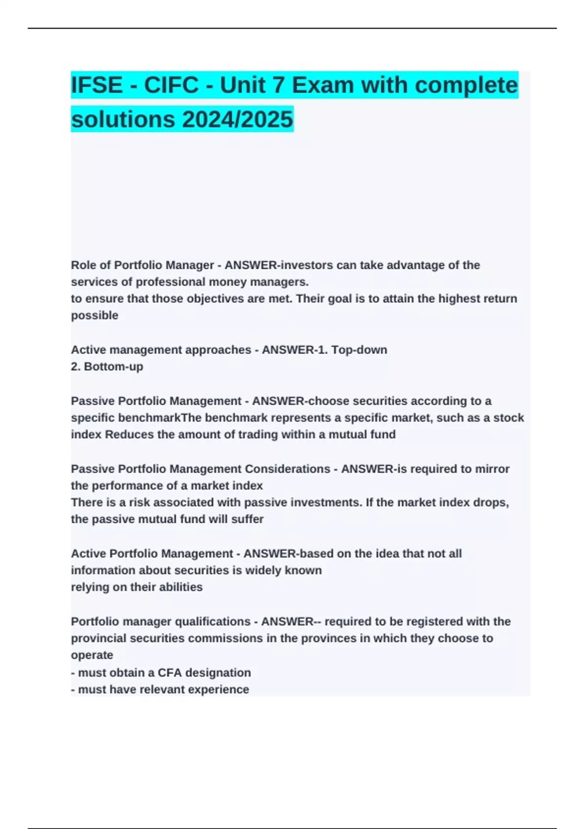 IFSE - CIFC BUNDLED EXAM 2024/2025 WITH 100% ACCURATE SOLUTIONS