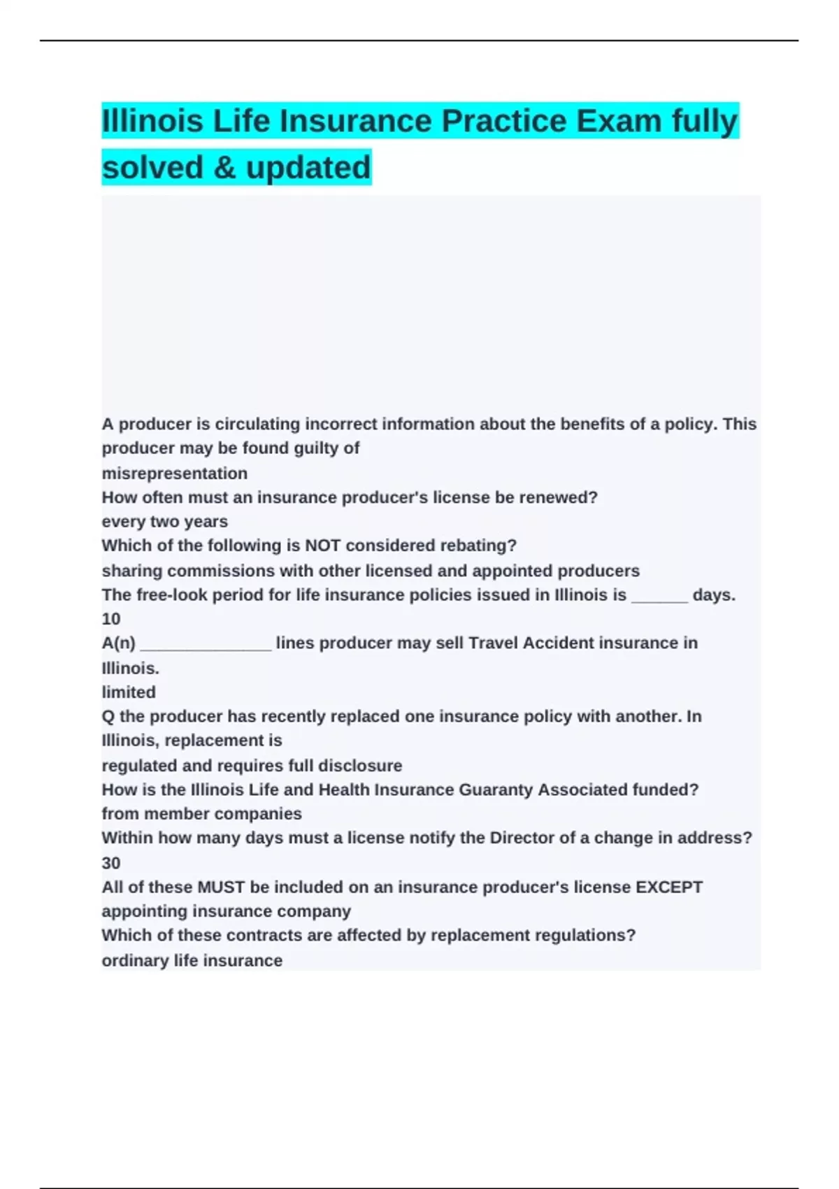 Illinois Life Insurance Practice Exam fully solved & updated 2024/2025