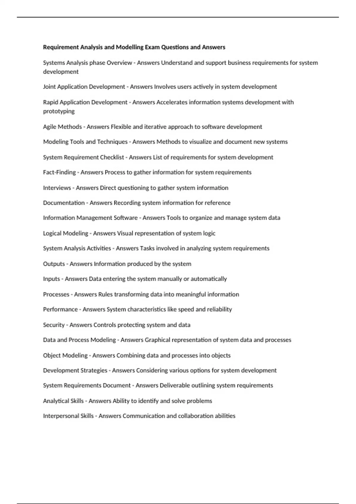 Requirement Analysis and Modelling Exam Questions and Answers