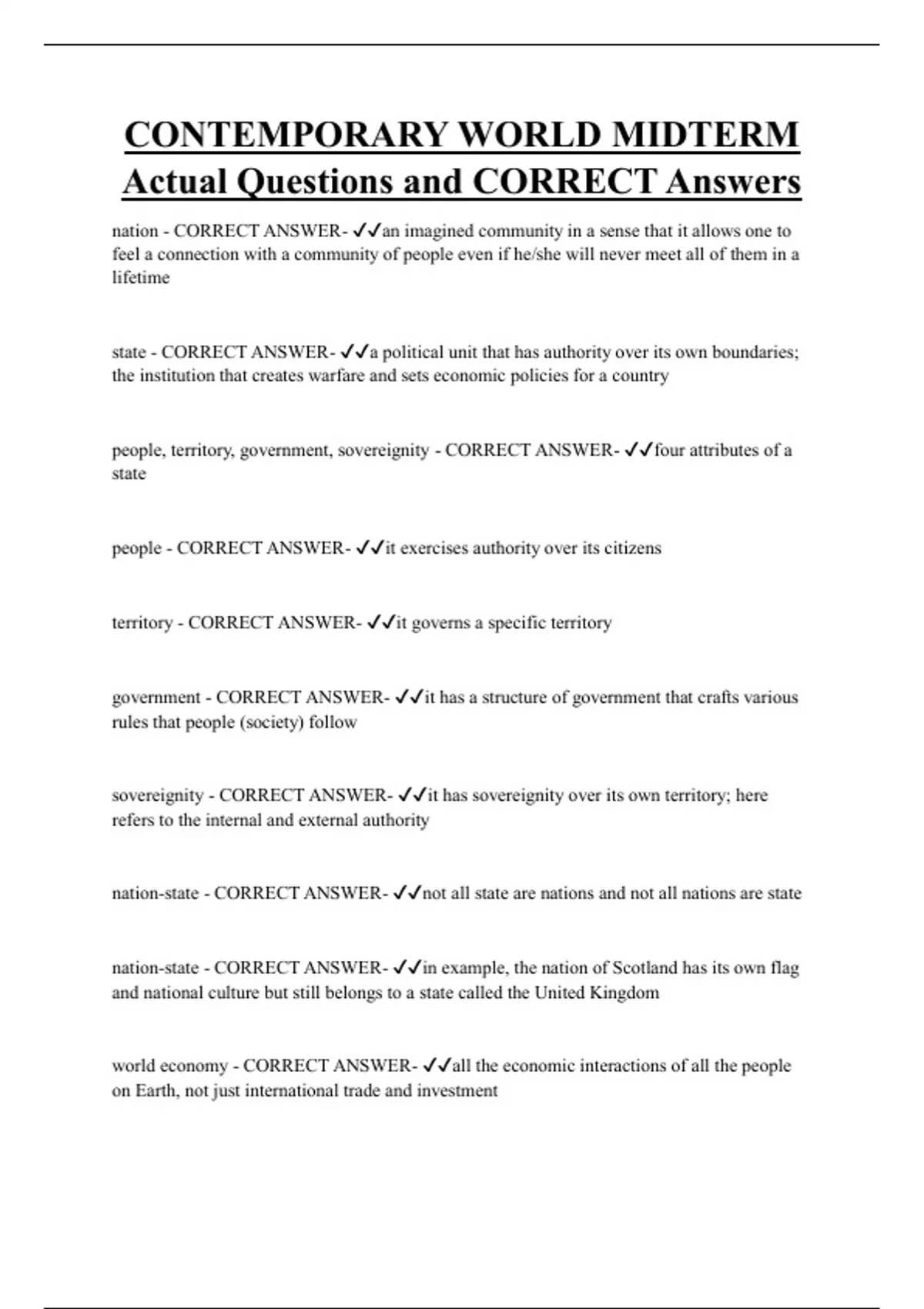 CONTEMPORARY WORLD Bundled Exam Questions and CORRECT Answers