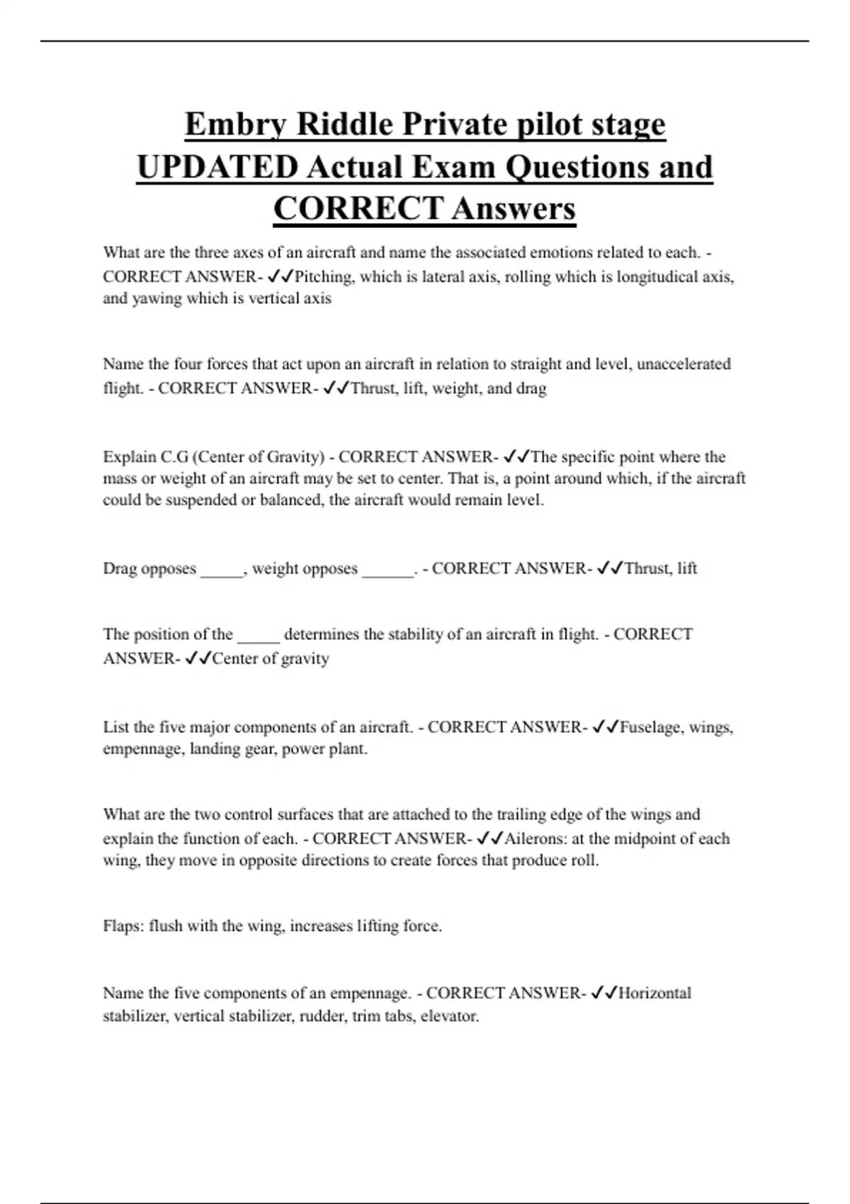 Embry-Riddle Bundled Exam Questions and CORRECT Answers