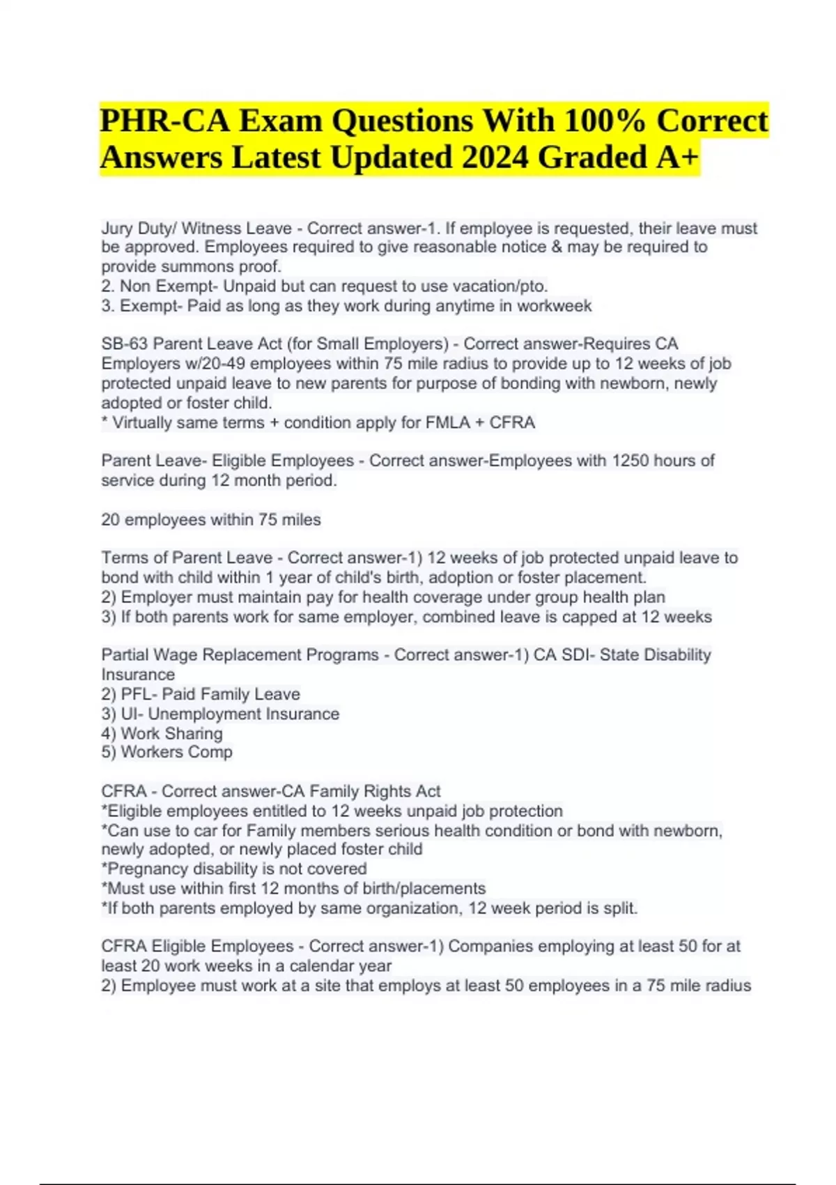 PHR Exam Practice Questions And Answers 100% Verified | PHR-CA Exam Questions With 100% Correct Answers | PHR CA Exam Questions and Answers Updated | PHR-CA Exam Questions With 100% Correct Answers & PHR CA PRACTICE EXAM QUESTIONS AND ANSWERS LATEST UPDATED 2024/2025 (100% CORRECT)