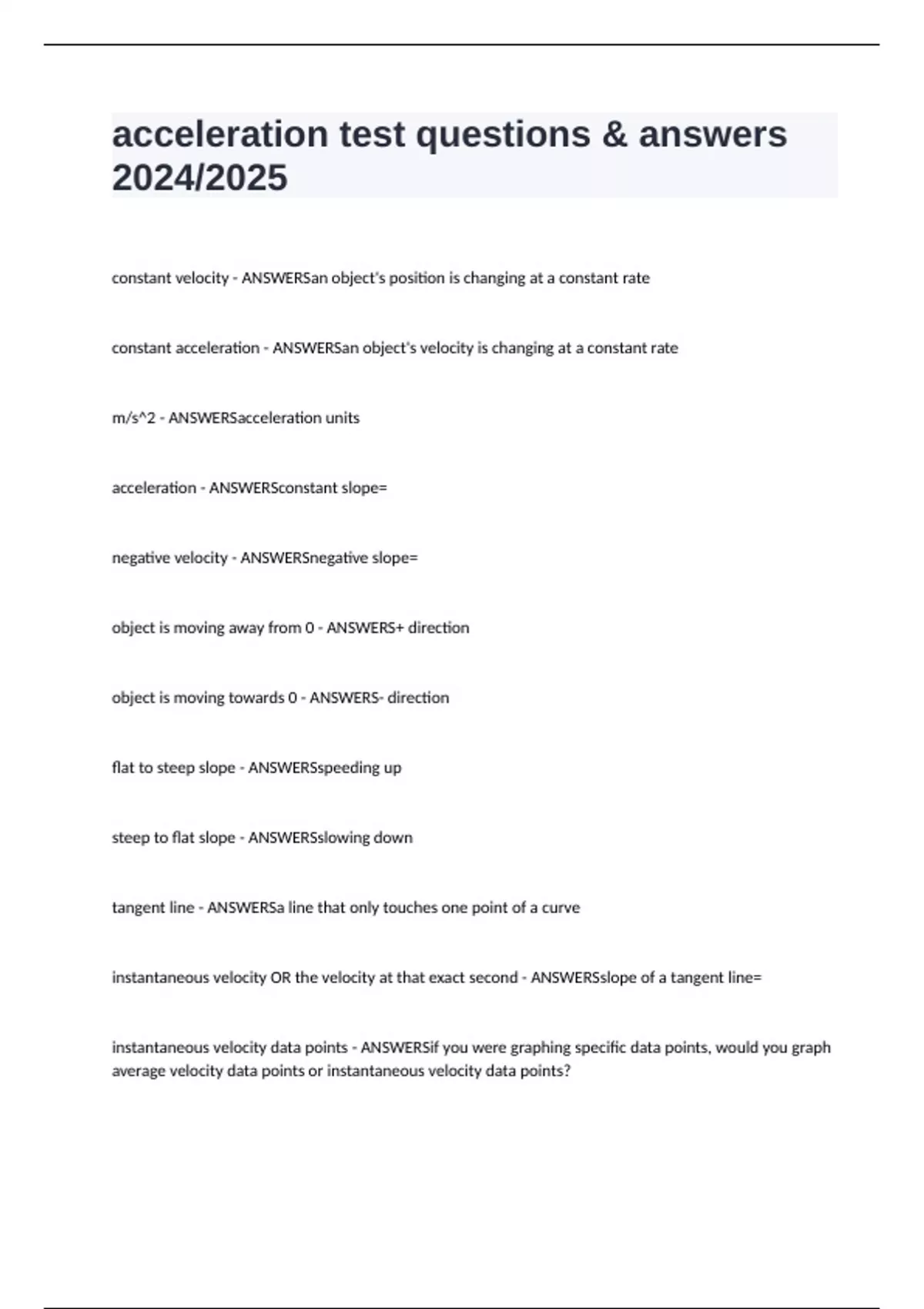 Acceleration Test Questions with Complete Solutions 2024/2025