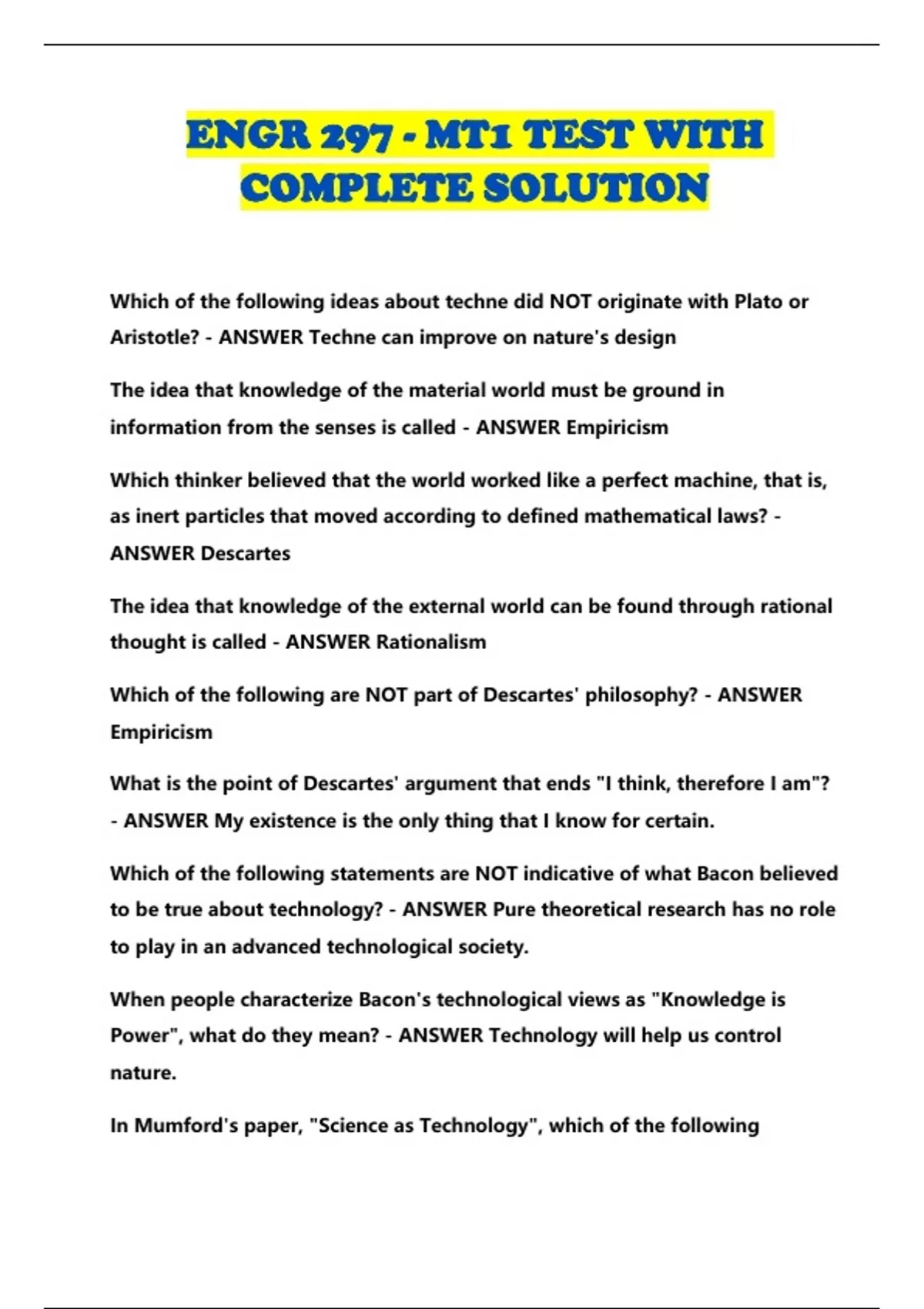 ENGR 297 - MT1 TEST WITH COMPLETE SOLUTION