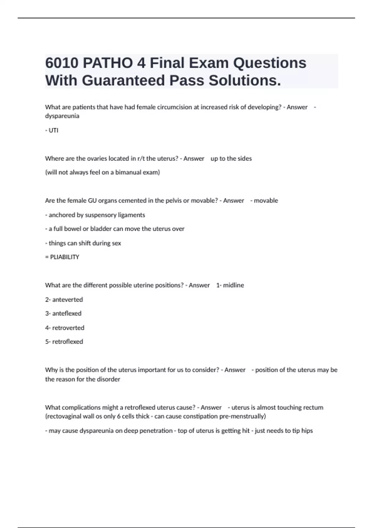 1 Exam (elaborations) NURS 6010 – Pathophysiology Midterm Exam Questions And All Correct Answers. 2 Exam (elaborations) NURS 6010 Exam 4 Practice Questions And Already Passed Answers. 3 Exam (elaborations) NURS 6010 Exam 2 Prep Exam Questions And Verified Complete Solutions. 4 Exam (elaborations) NURS 6010 Exam 1 Practice Questions And Complete