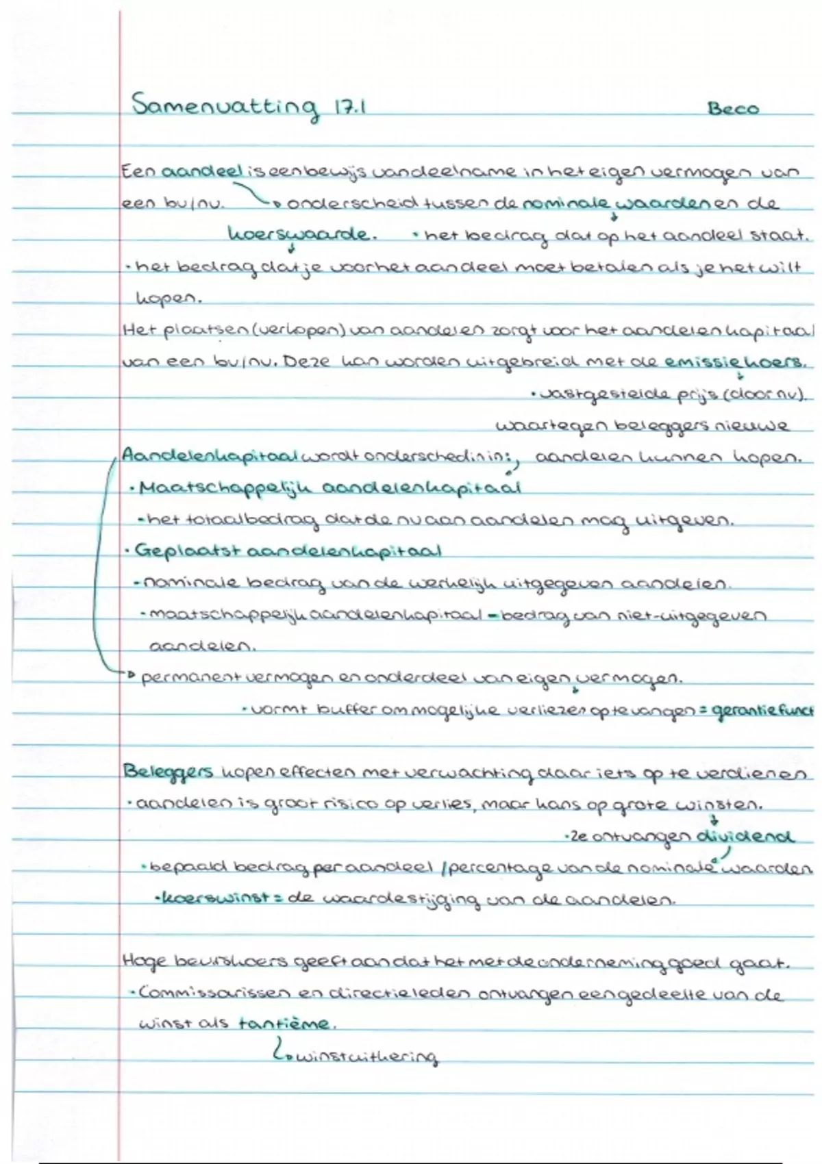 Samenvatting Beco - Bedrijfseconomie in balans - Havo 4 - Hoofdstuk 17 - Eigen vermogen