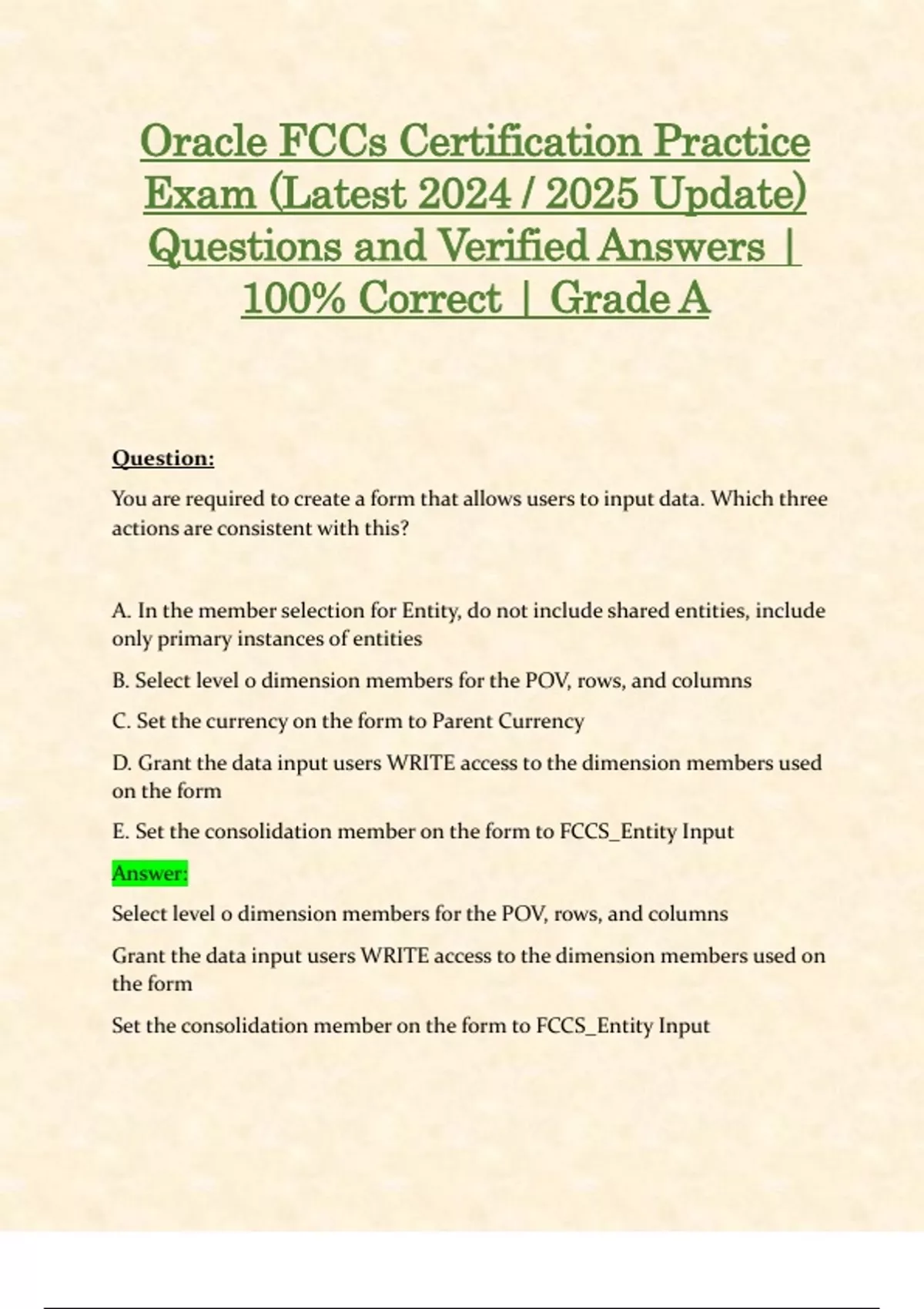 Oracle FCCs Certification Exams (Latest 2024 / 2025 Updates STUDY BUNDLE PACKAGE) Questions and Verified Answers | 100% Correct | Grade A