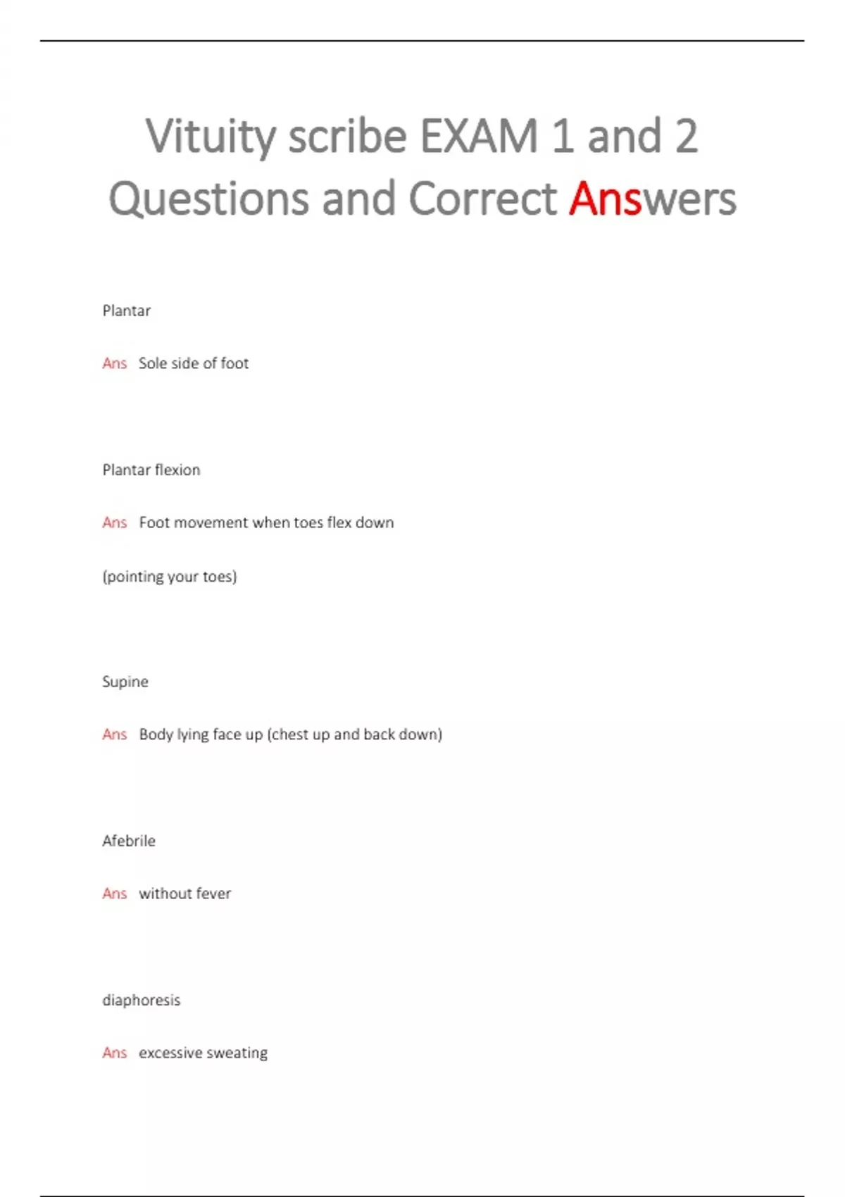 Vituity scribe EXAM 1 and 2 Questions and Correct Answers