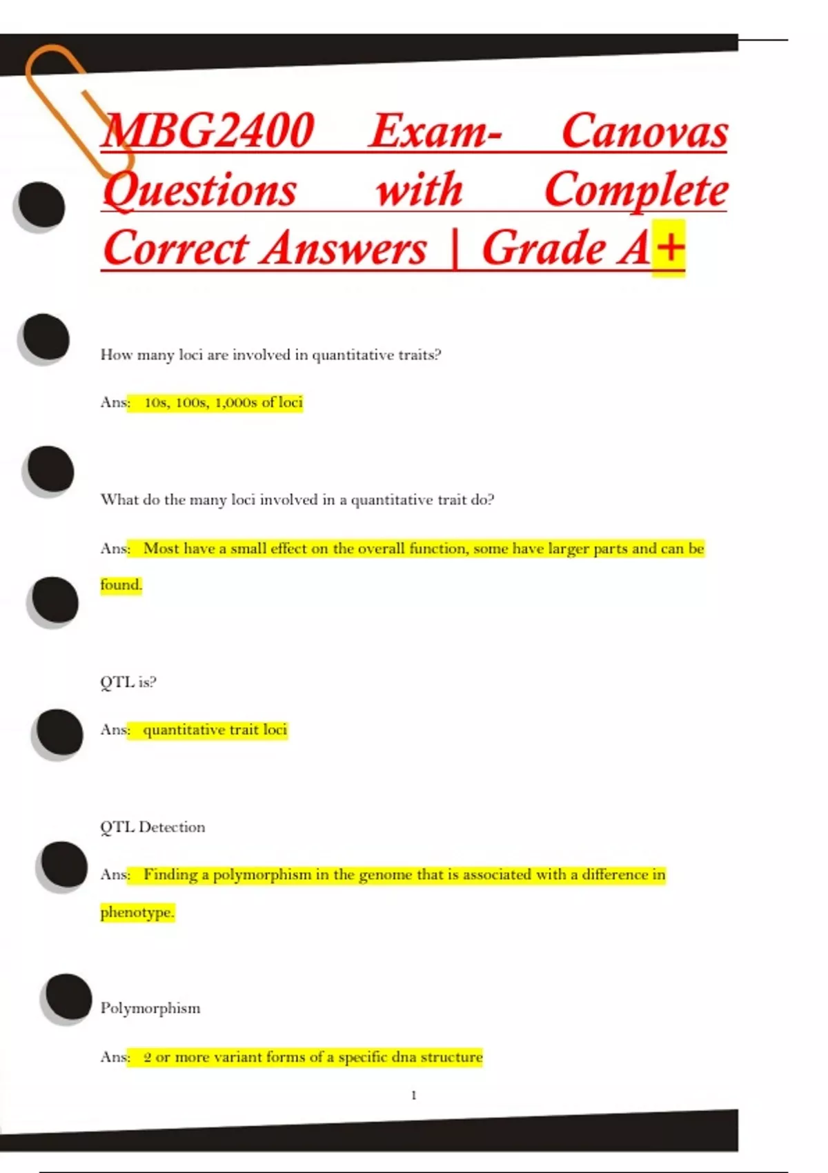 MBG 2400 Exam Questions with Complete Correct Answers | Grade A+