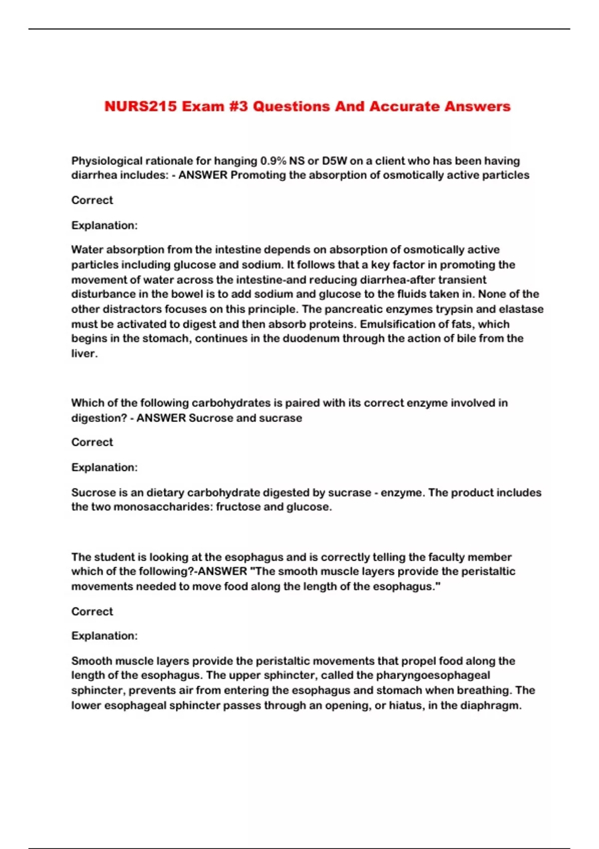 NUR 215 Exam 2 Questions And 100% Correct Answers