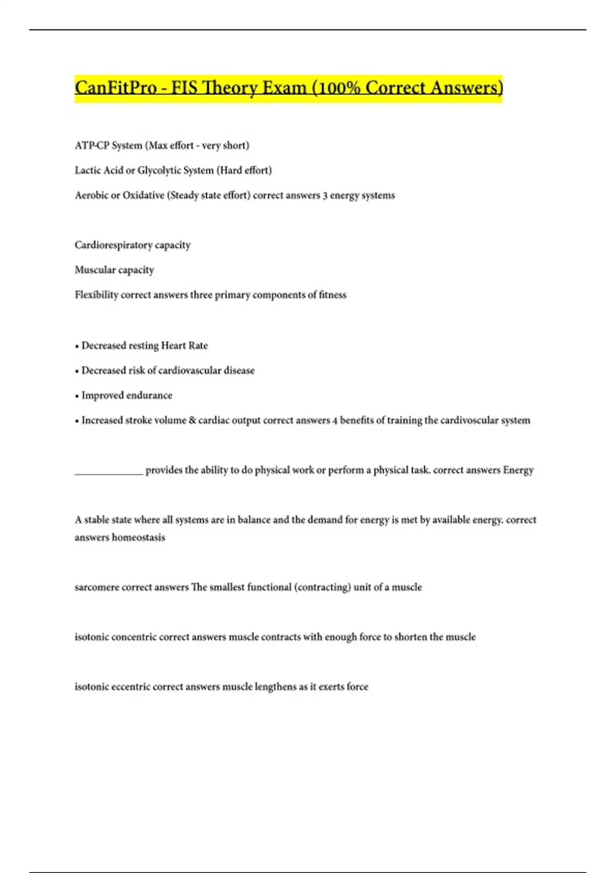 Canfitpro Exam Prep (All possible questions with 100% correct answers)