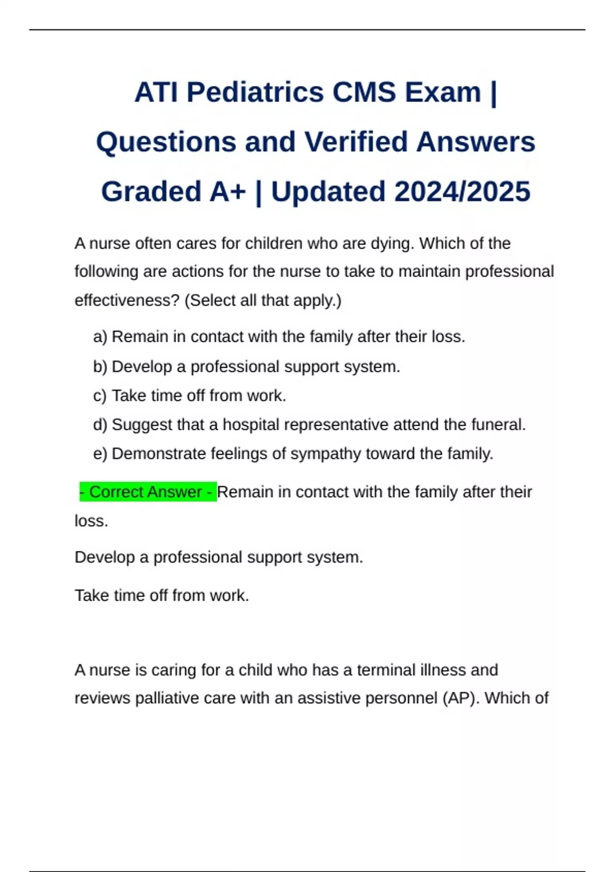 ATI PEDS CMS EXAM | QUESTIONS AND ANSWERS GRADED AND RATED A+ | LATEST 2024/2025