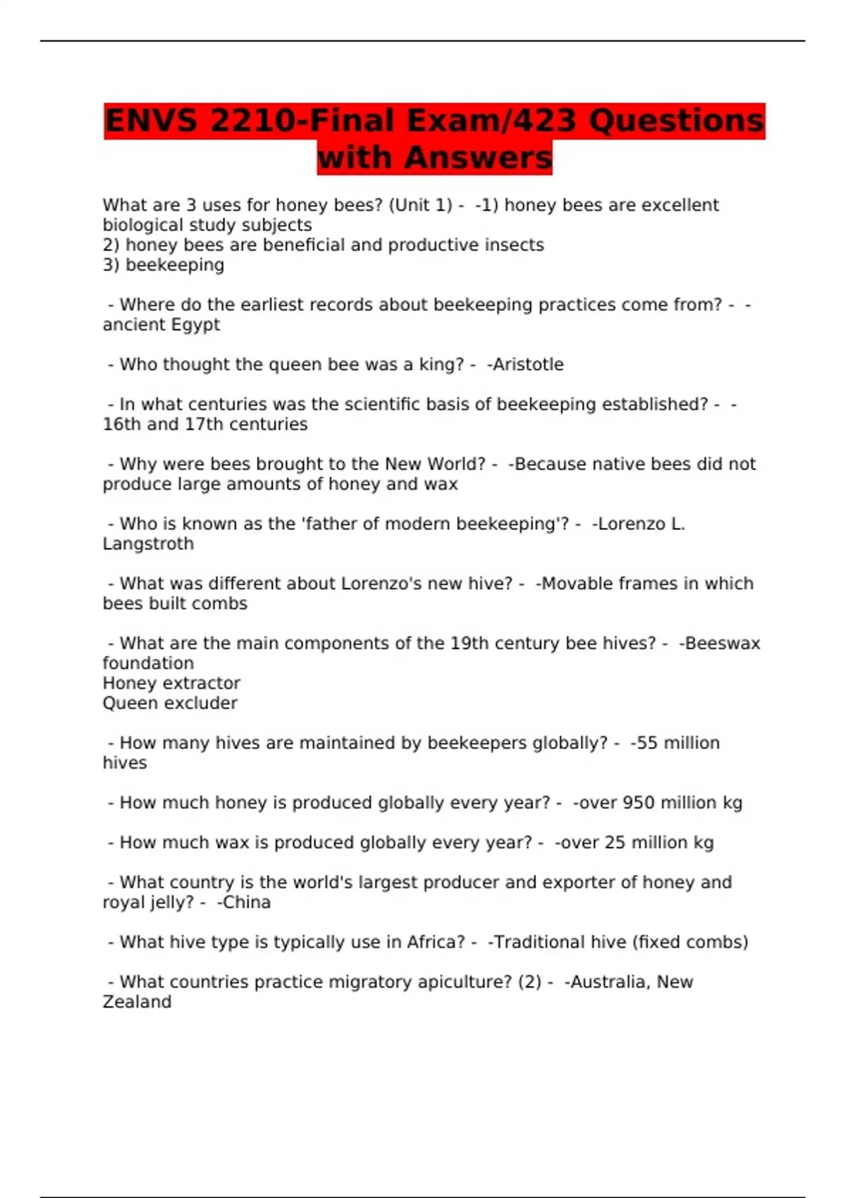 ENVS*2210 Final Exam/357 Q’s and A’s A+ Graded