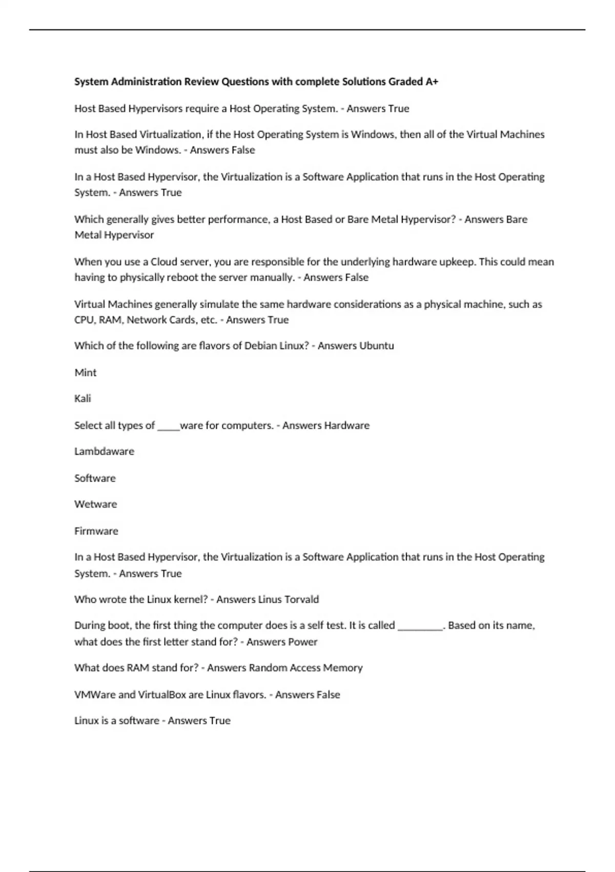 Linux System Administration Review Questions with complete Solutions Rated A+