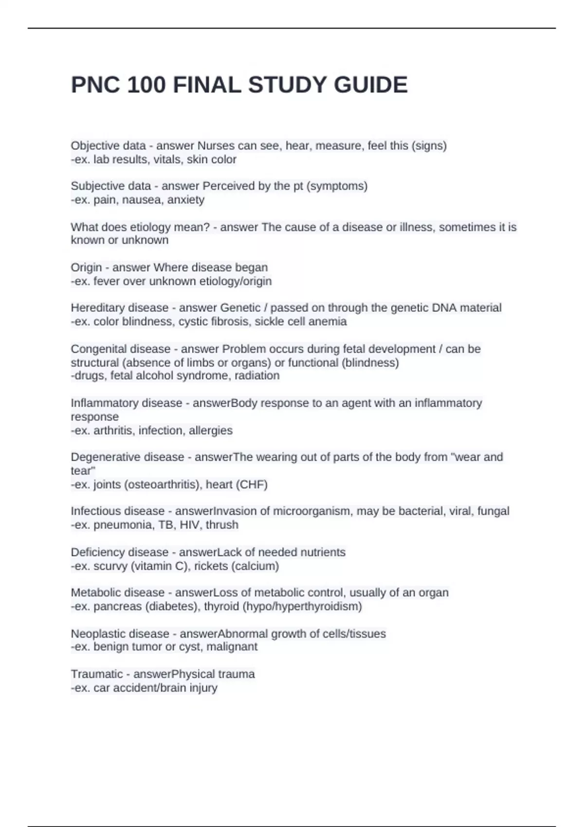 PNC 100 FINAL STUDY GUIDE QUESTIONS WITH CORRECT ANSWERS