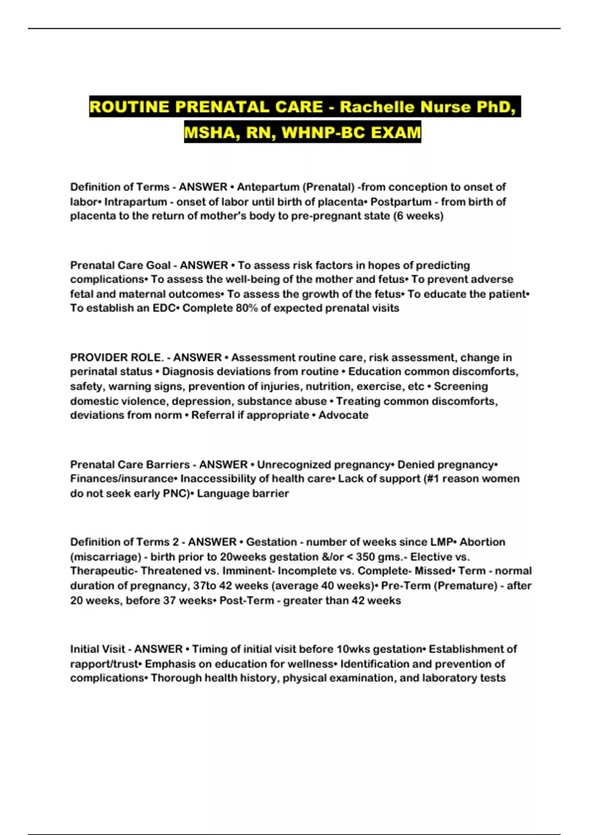 ROUTINE PRENATAL CARE - Rachelle Nurse PhD, MSHA, RN, WHNP-BC EXAM