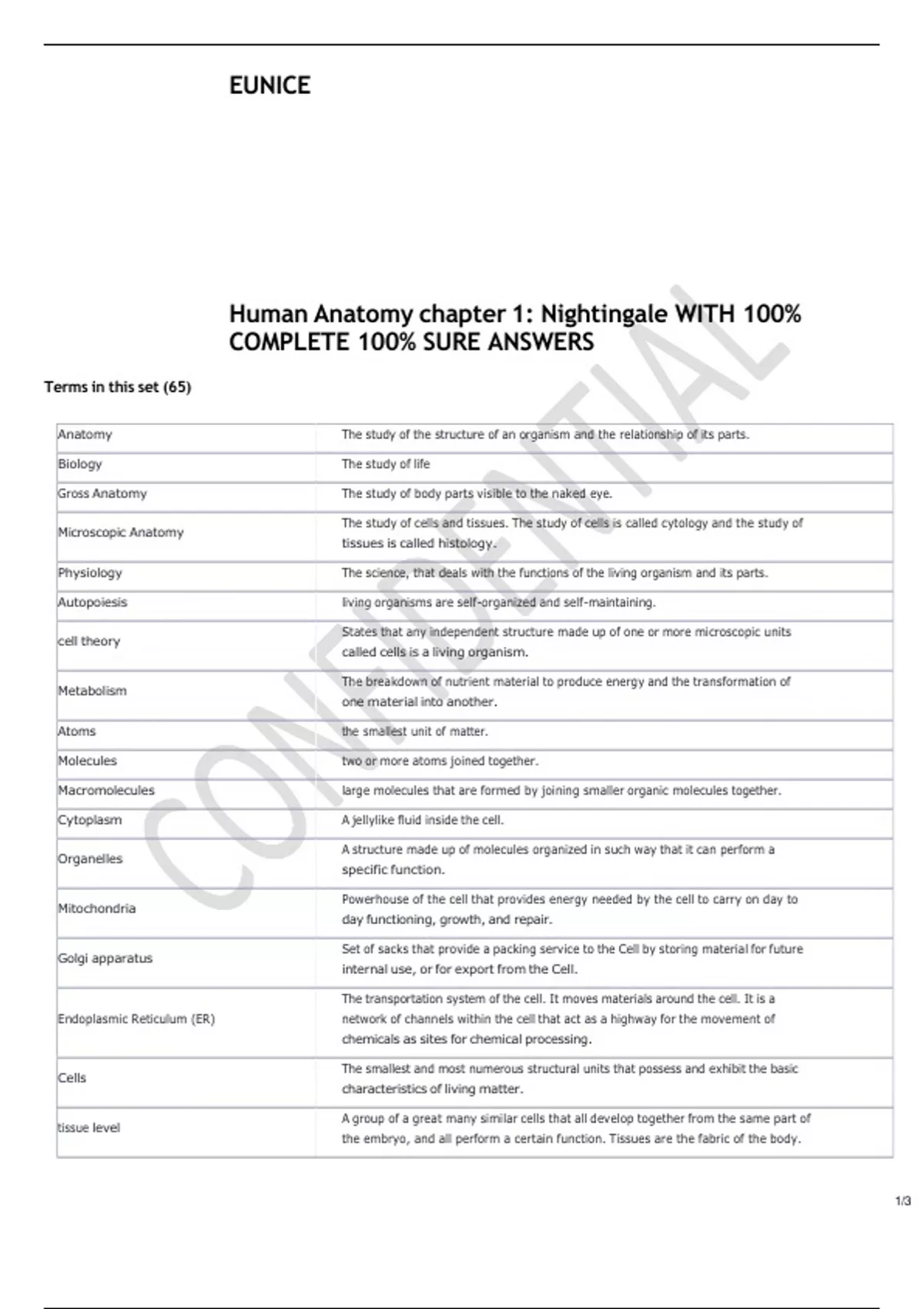 anatomy nightingale college 1 WITH 100- COMPLETE ANSWERS