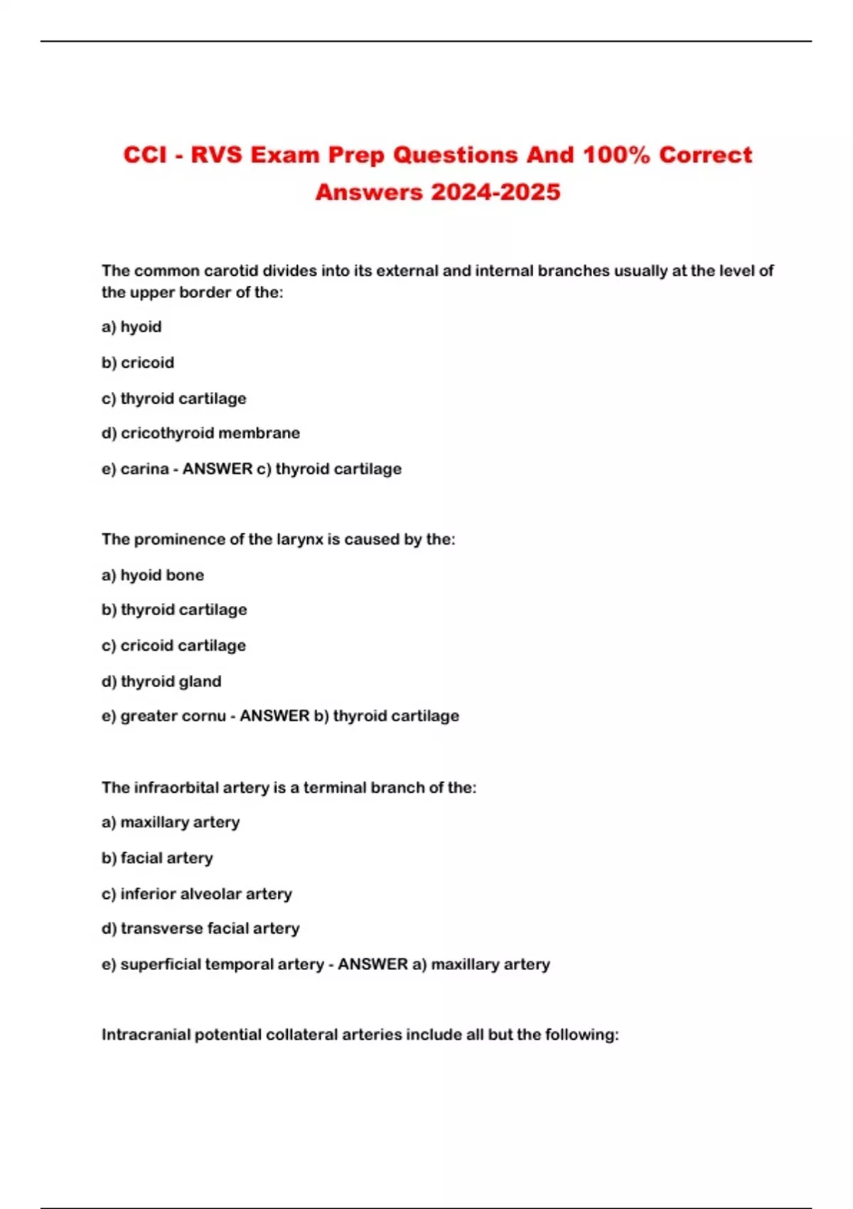 CCI RVS Cranial Exam Questions And Answers