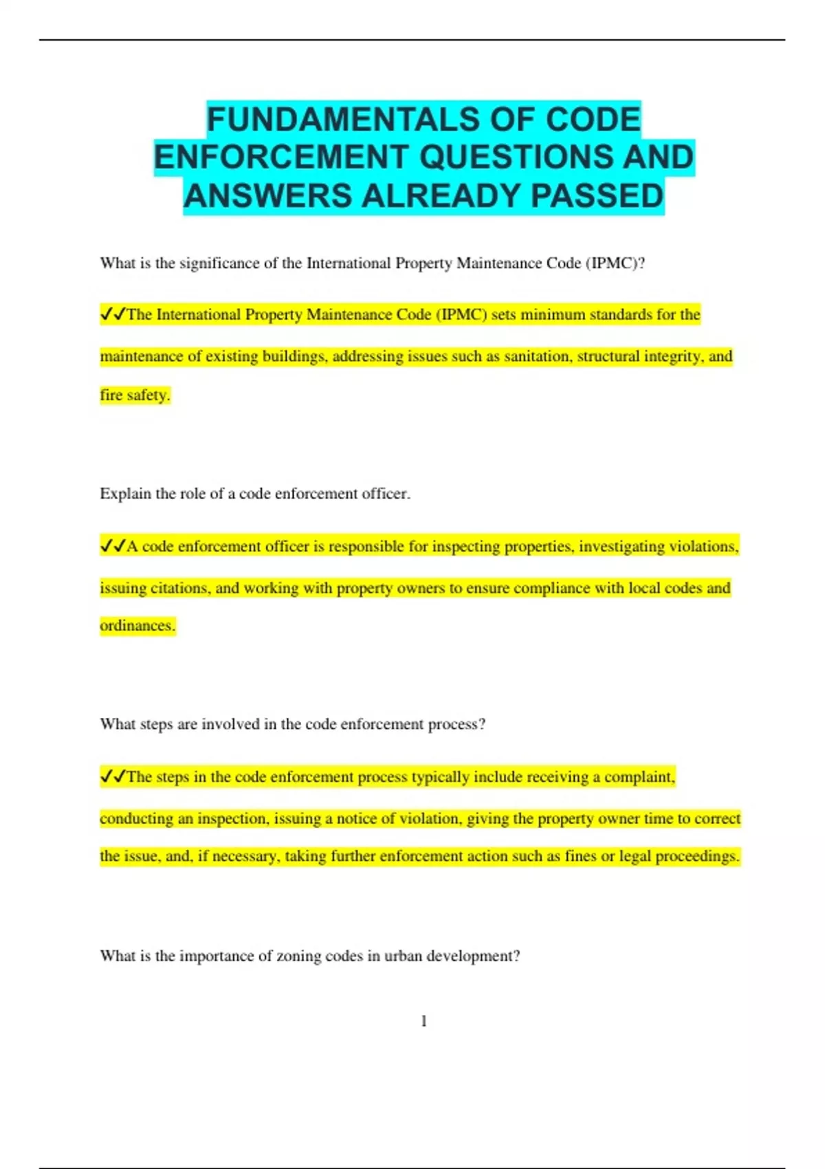 FUNDAMENTALS OF CODE ENFORCEMENT QUESTIONS AND ANSWERS ALREADY PASSED