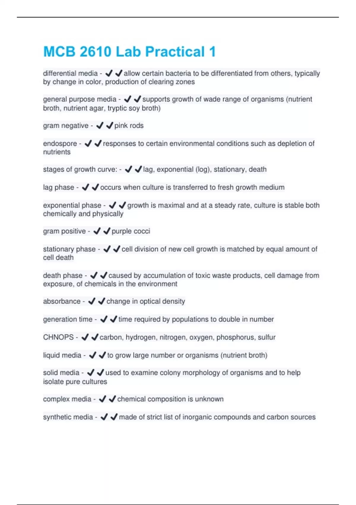 MCB 2610 Lab Exam I Questions And Answers Rated 100% Correct
