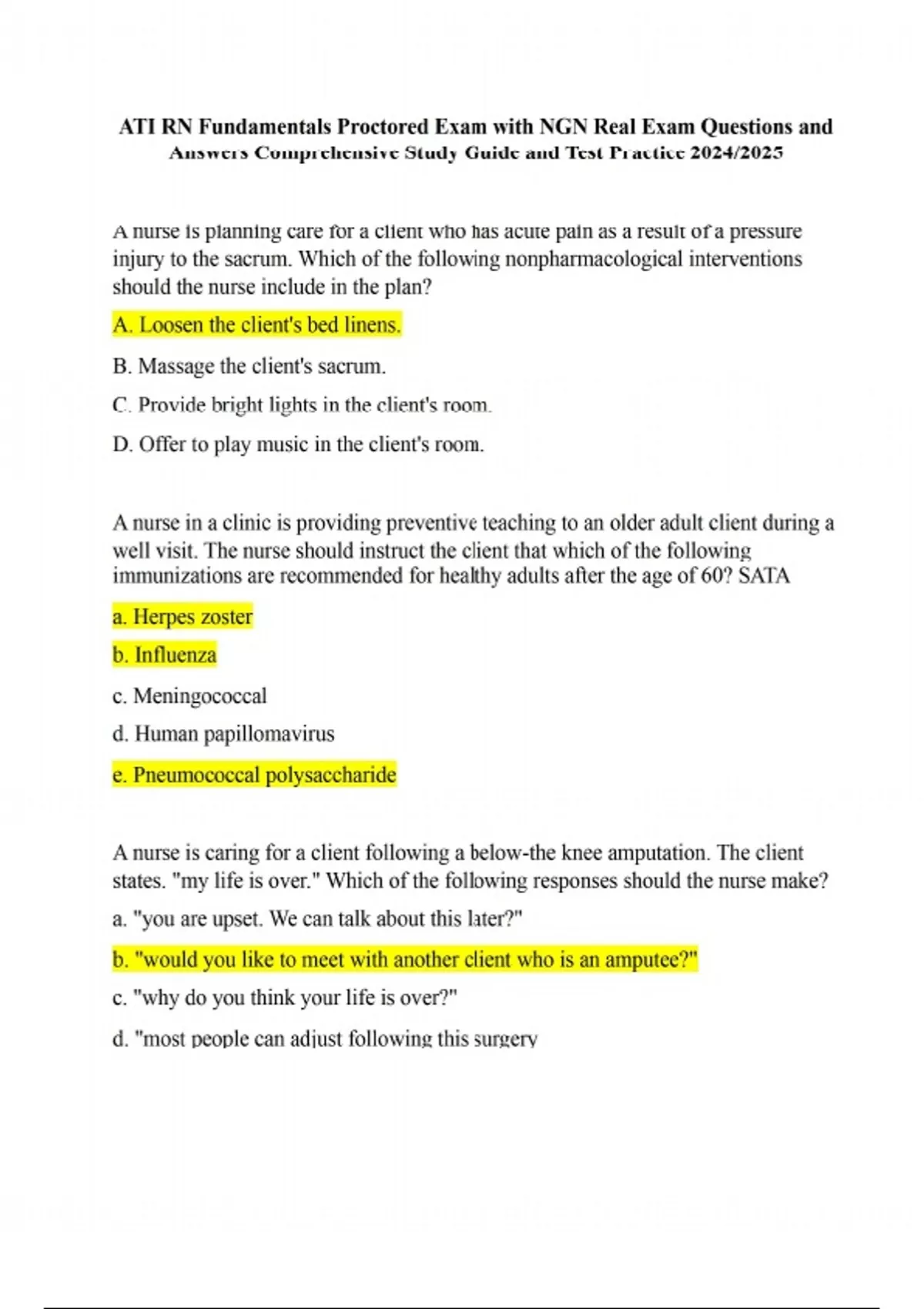 ATI FUNDAMENTALS PROCTOR MAIN PRACTICE, ATI Fundamentals Proctored Exam, ATI RN Fundamentals Proctored Exam, ATI RN Fundamentals Proctored Exam with NGN, ATI Fundamentals Proctored Exam Study Guide AHIP, ATI PN Fundamentals Exam, Fundamentals Proctored Preoperative Nursing Exam and Fundamentals Proctored Exam Questions And Answers Package Deal 2024