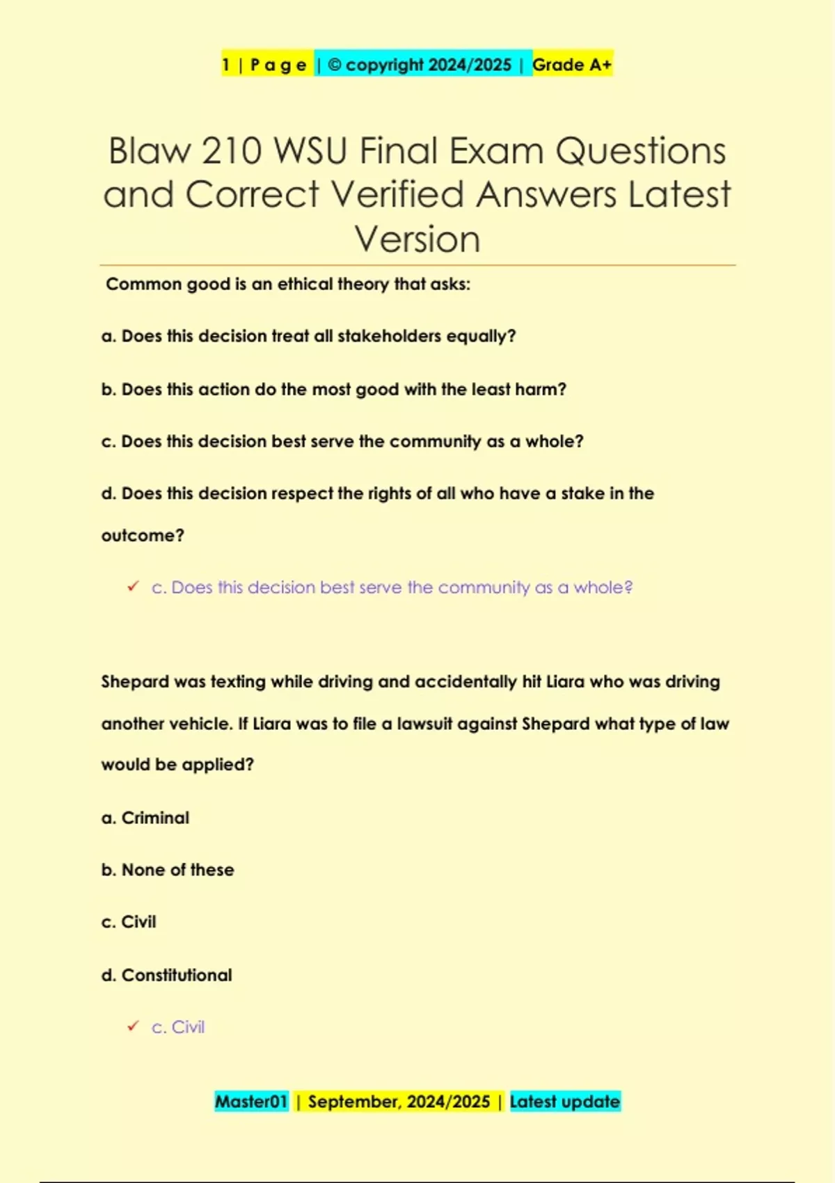 Blaw 210 WSU Questions and Correct Verified Answers Latest Version