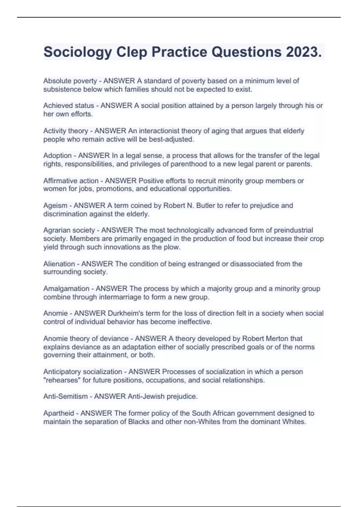 SOCIOLOGY STUDY EXAM QUESTIONS ,ALL SECTIONS INCLUDED AND CORRECTLY ANSWERED.SUCCESS GUARANTEED.2023,2024,2025 EXAMS.
