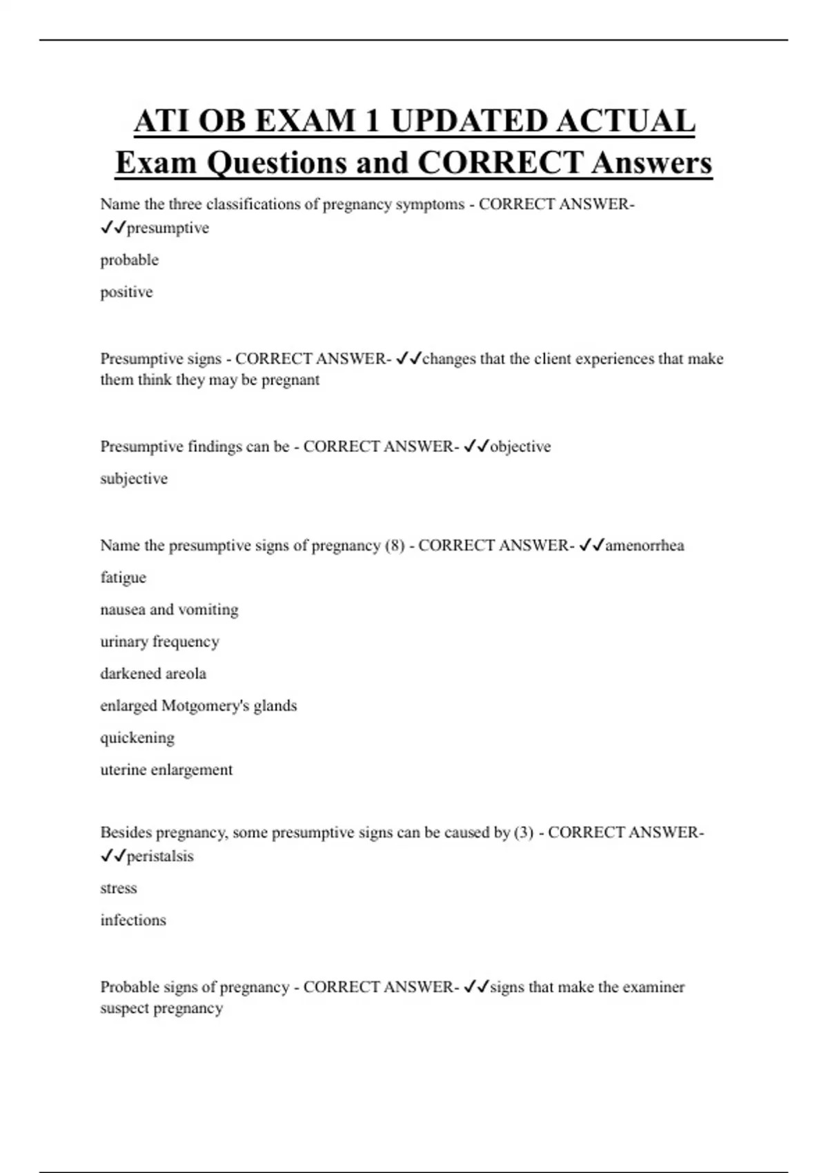 ATI OB Bundled Exam Questions and CORRECT Answers
